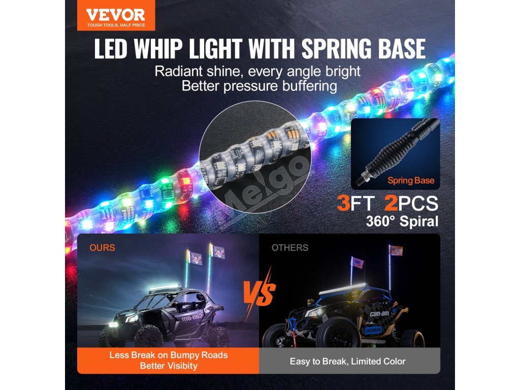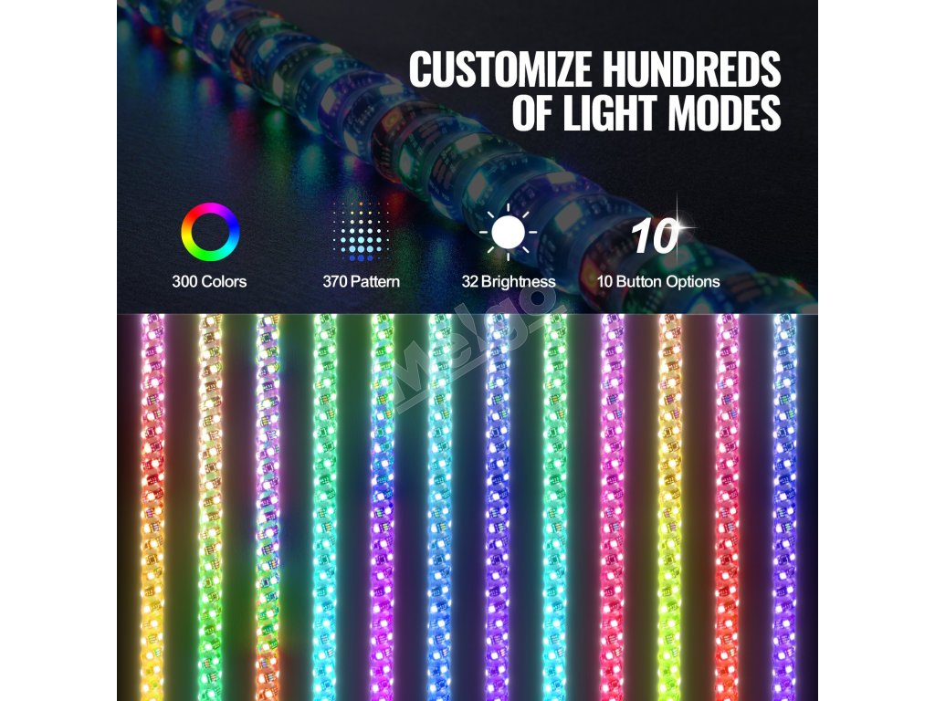 Sada 2 ks 3 ft led prúty s pružinovým základom, 360° rgb, vodotesné