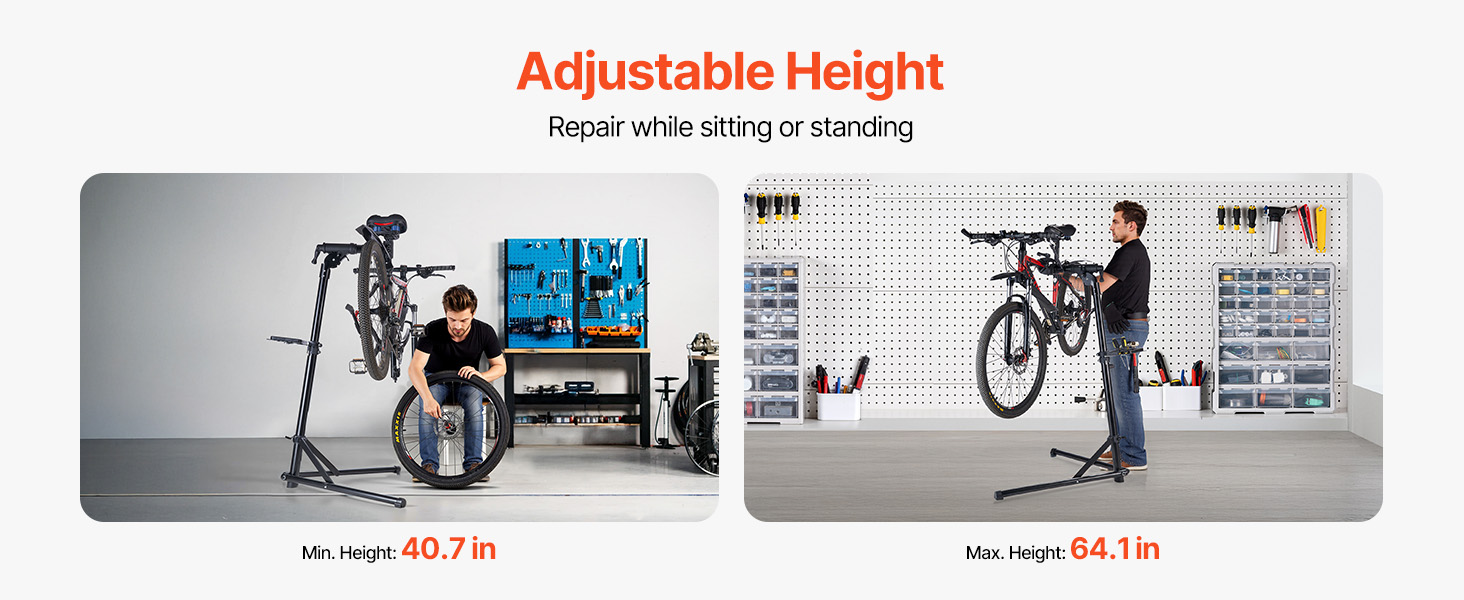 Stojan na opravu bicyklov je po rozložení pripravený na použitie a ponúka široký rozsah zdvíhania, ktorý ľahko spĺňa potreby výšky opravy dospelých aj detí.