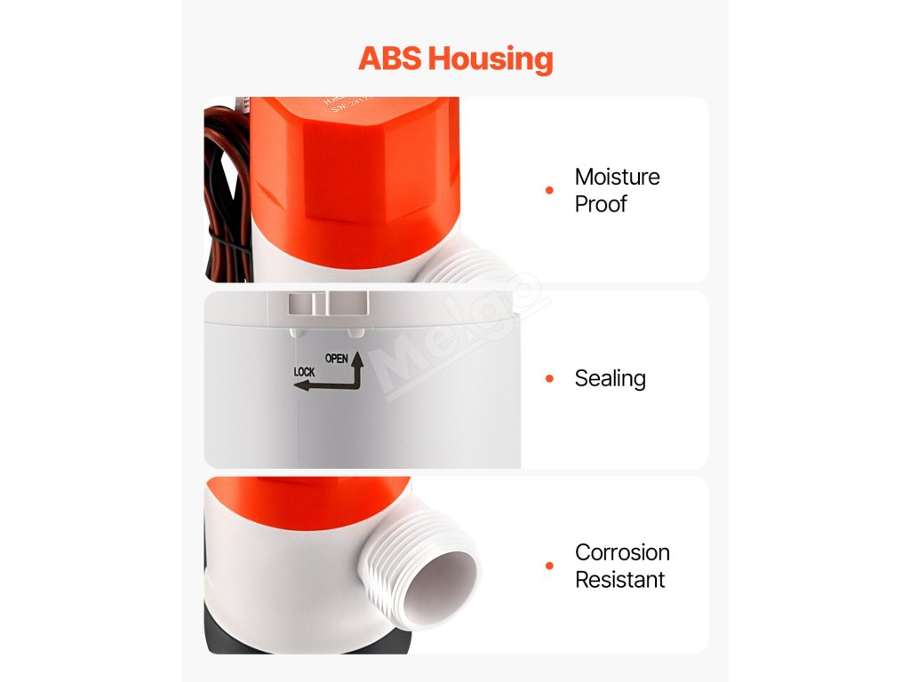 Vďaka materiálu puzdra čerpadla z ABS sa môže úplne ponoriť do vody, prispôsobiť prostrediu, ako je morská a sladká voda, a je vysoko odolné proti korózii, čo z neho robí spoľahlivé čerpadlo na návnadu pre lode.