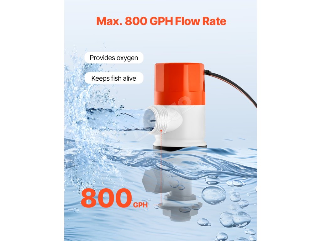 Rozlúčte sa s nízkou hladinou kyslíka s týmto 800 GPH čerpadlom do živých priestorov pre lode. Vďaka dvom vstupom zlepšuje cirkuláciu vody a podporuje lepšie prežitie rýb. Vďaka jednoduchej inštalácii a odolnému puzdru z ABS je ideálnym čerpadlom do živých priestorov pre lode. Je kompaktné, spoľahlivé a jednoducho sa používa.