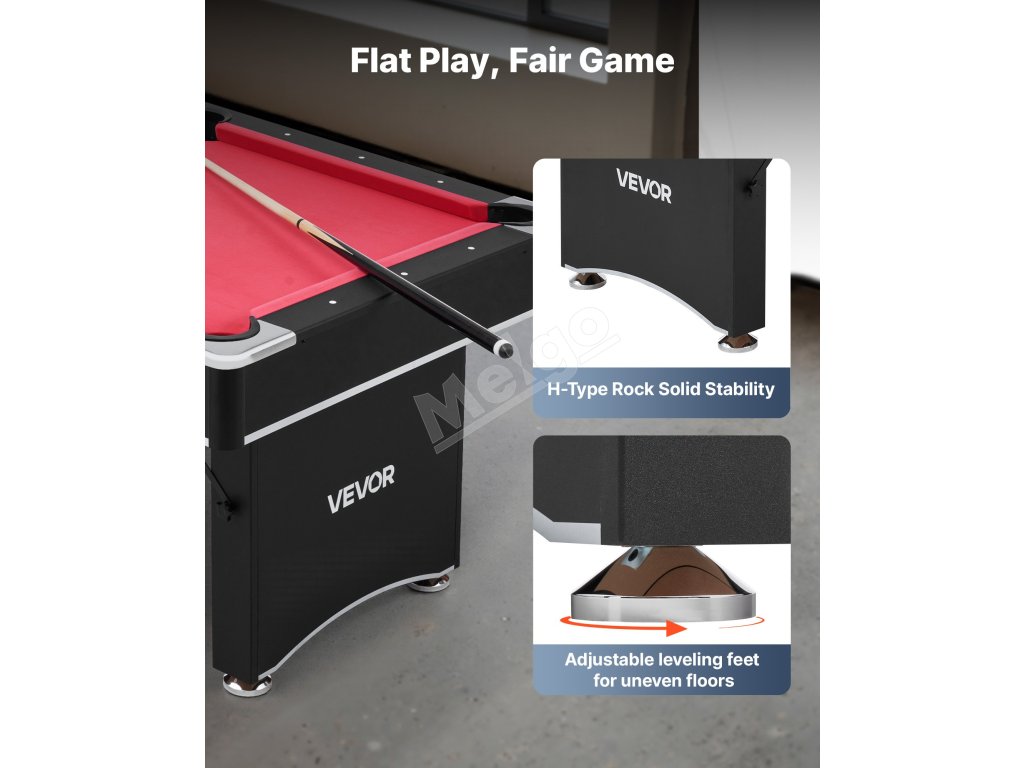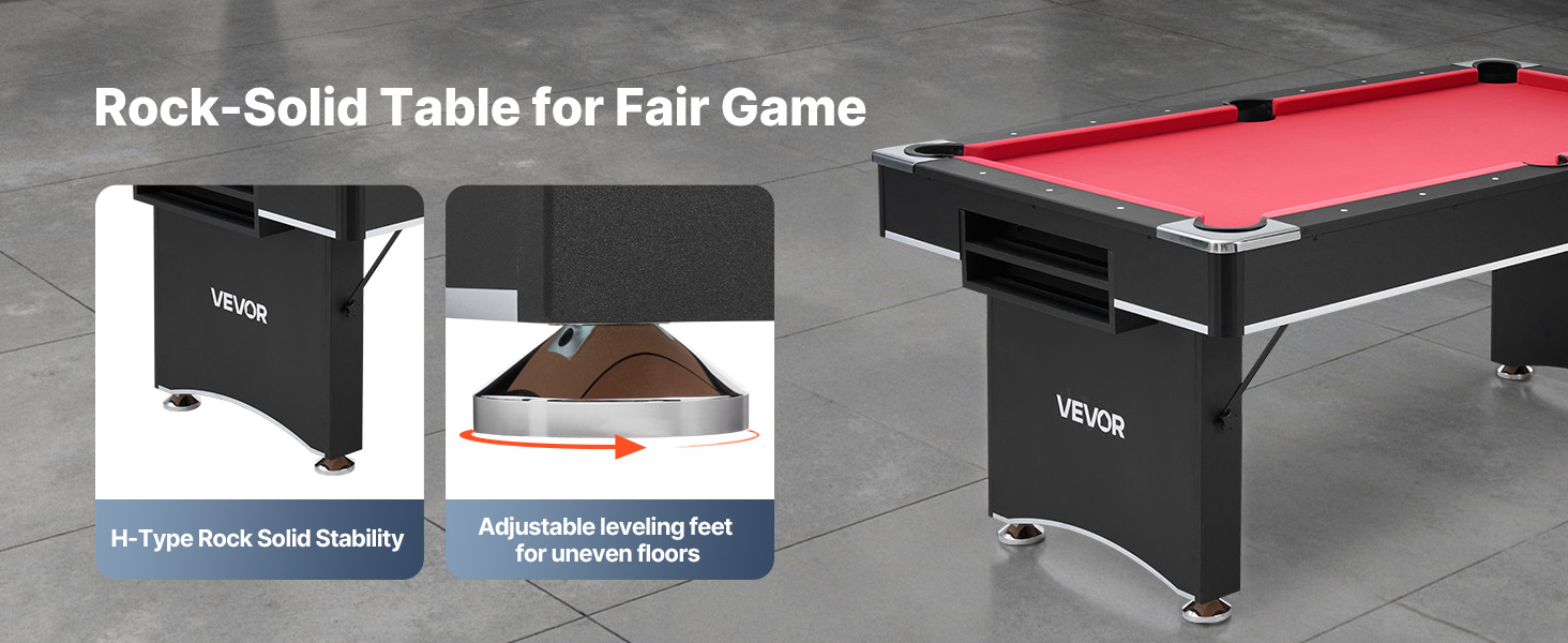 Táto súprava biliardového stola má rám vyrobený z prvotriednej MDF dosky, ktorá zaručuje výnimočnú robustnosť a dlhodobú životnosť. Nastaviteľné nivelačné nožičky navyše zabezpečujú stabilnú a vyváženú hraciu plochu aj na nerovných podlahách.