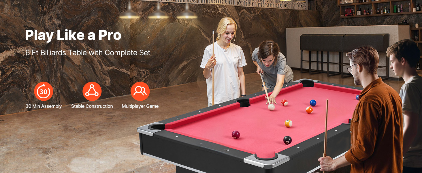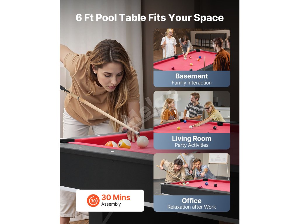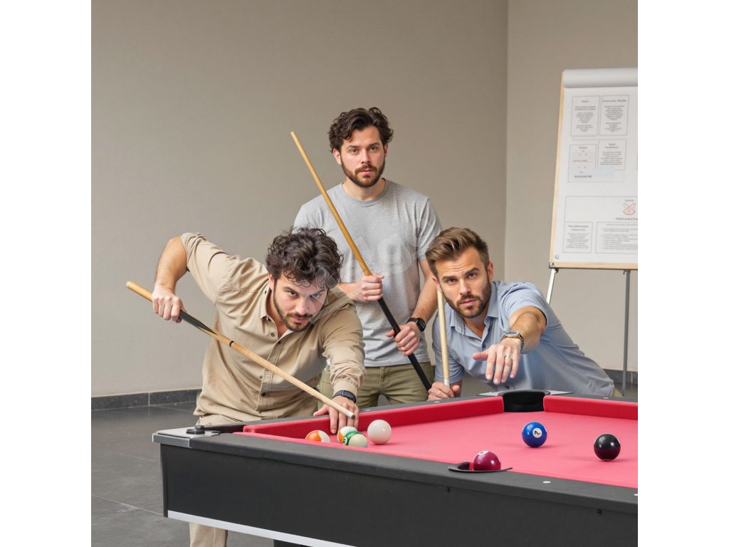 Tento prenosný biliardový stôl je ideálny do rôznych prostredí, od pivníc až po kancelárie. Ľahko ho premiestnite na večierky, rodinné stretnutia alebo zábavu v garáži. Vychutnajte si okamžitú zábavu s minimálnou potrebou nastavenia.