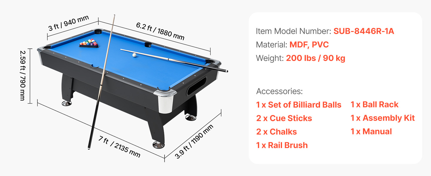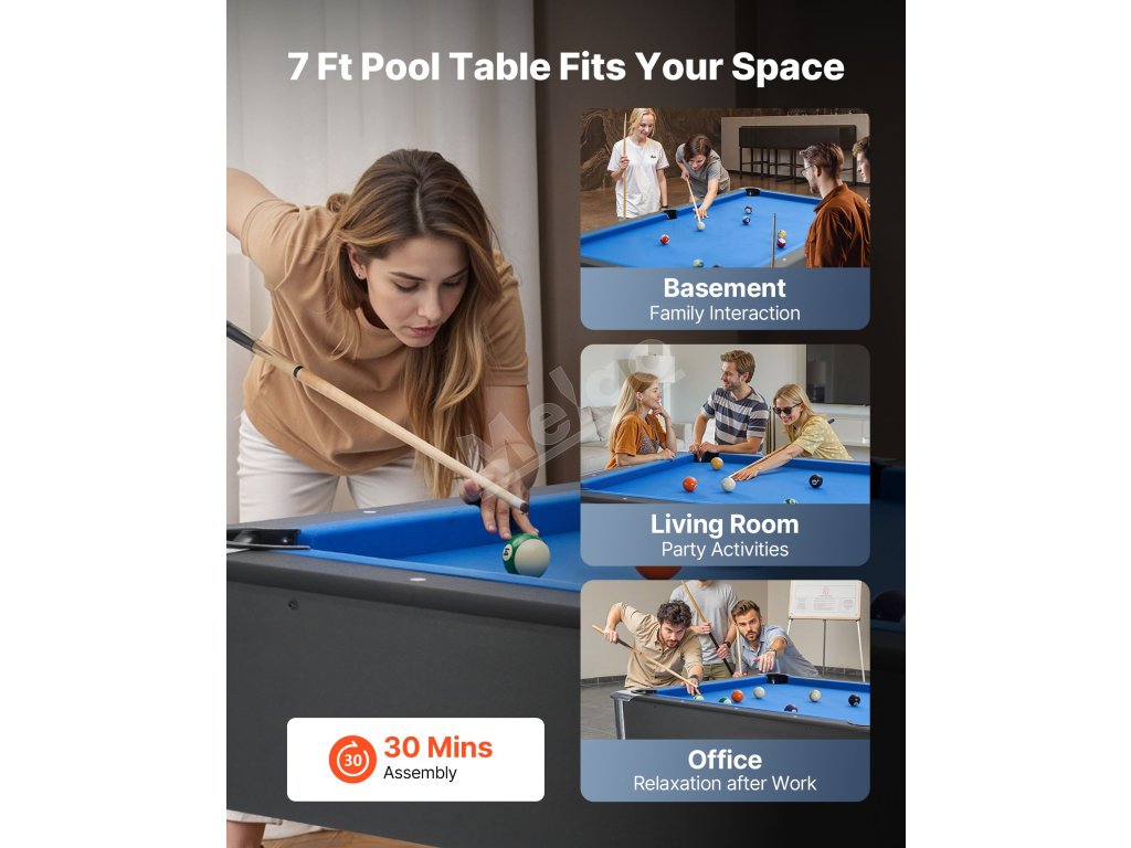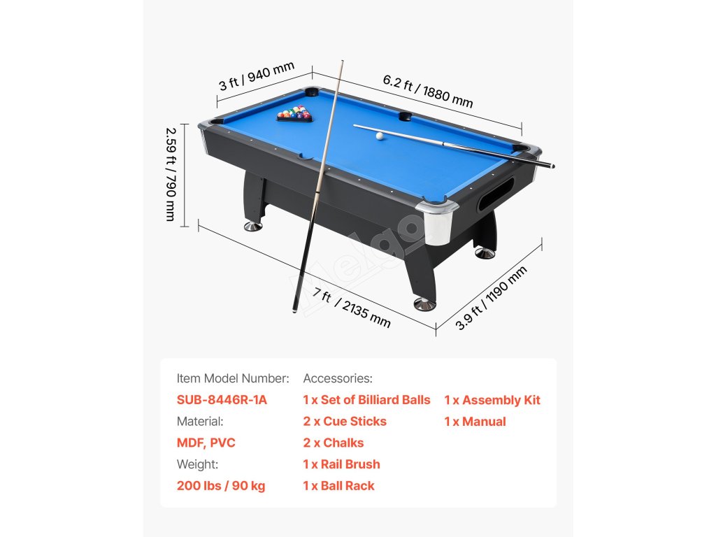 Prenosný biliardový stôl 213cm, nastaviteľné nohy, s príslušenstvom