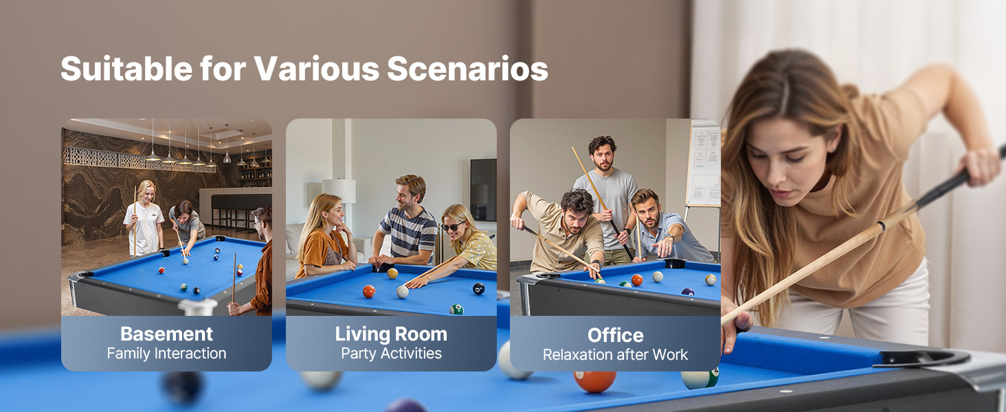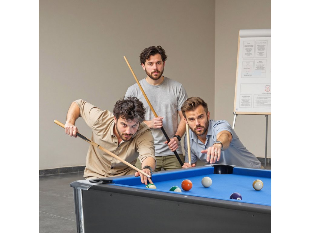 Tento prenosný biliardový stôl je ideálny do rôznych prostredí, od pivníc až po kancelárie. Ľahko ho premiestnite na večierky, rodinné stretnutia alebo zábavu v garáži. Vychutnajte si okamžitú zábavu s minimálnou potrebou nastavenia.