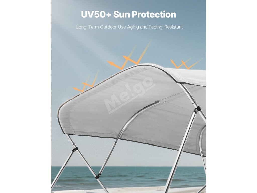 Táto markíza na loď je vyrobená z hrubej polyesterovej tkaniny s vysokou hustotou farbenia 600D, ktorá odoláva vyblednutiu aj po vystavení slnku a dažďu. Ponúka ochranu proti slnku, čím poskytuje chladný a zatienený priestor na vonkajšie použitie.