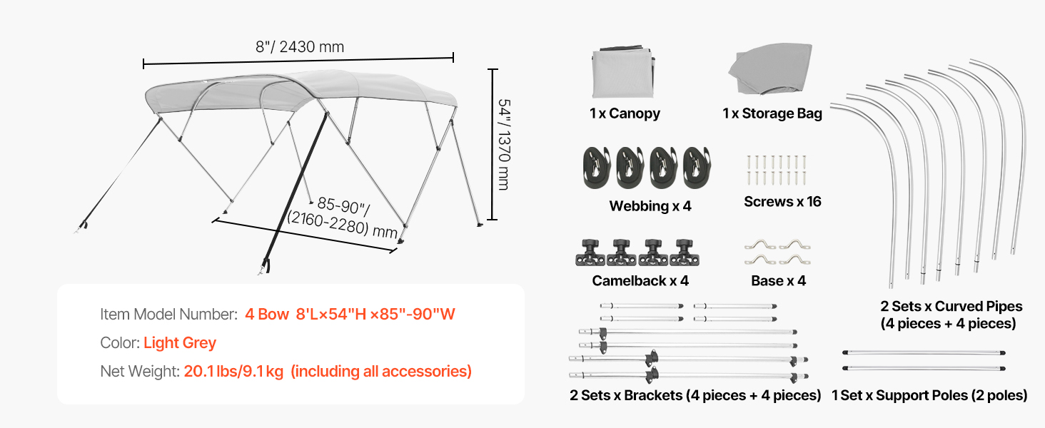 | Číslo modelu položky | 4 lúk 8'D × 54 "V × 85"-90 "Š |