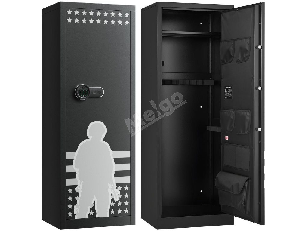 Trezor na zbrane pojme až 10-12 pušiek a 4 ručné zbrane, čím spĺňa požiadavky na skladovanie náročných zberateľov a používateľov viacerých zbraní. Je vybavený nastaviteľnými regálmi na uloženie strelných zbraní rôznych dĺžok.