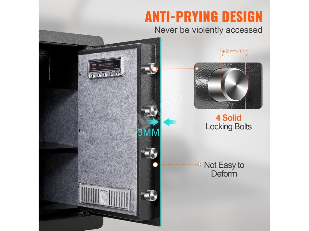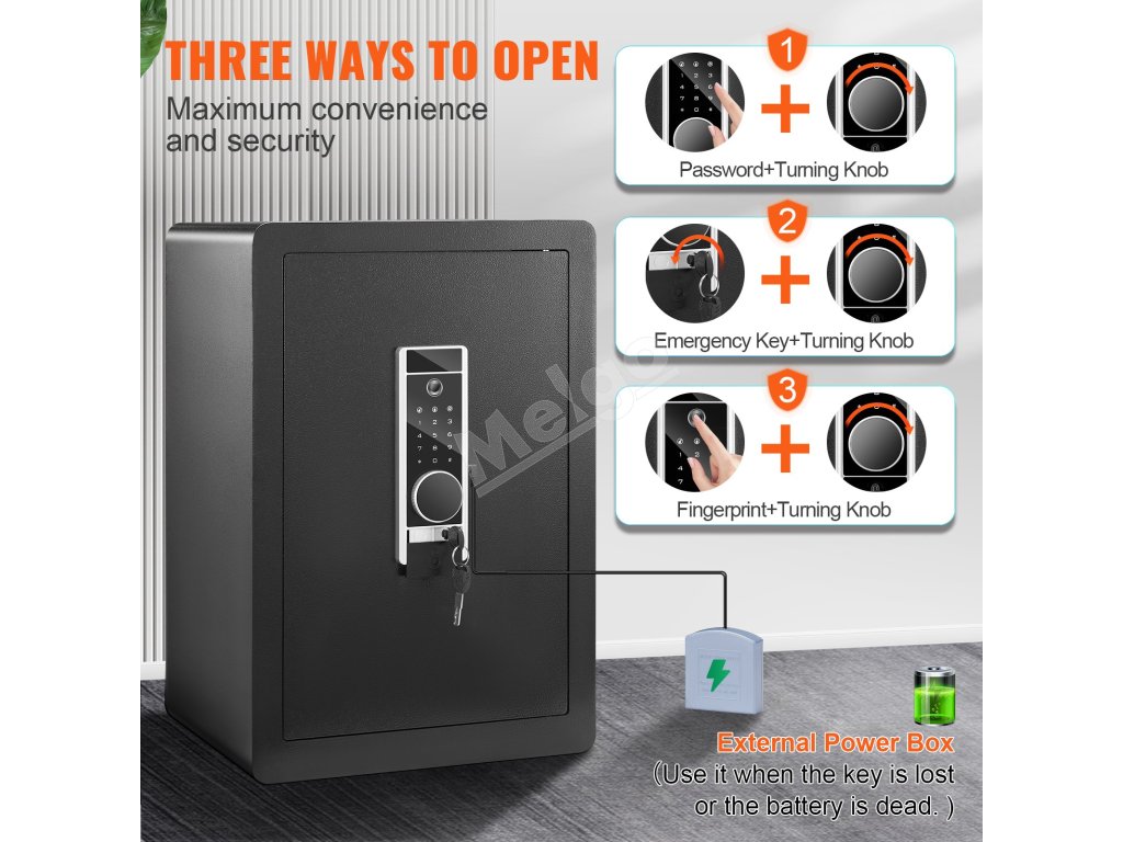 Domáci oceľový trezor 62 L, odtlačok, kód, 2 kľúče, 40×33×60 cm