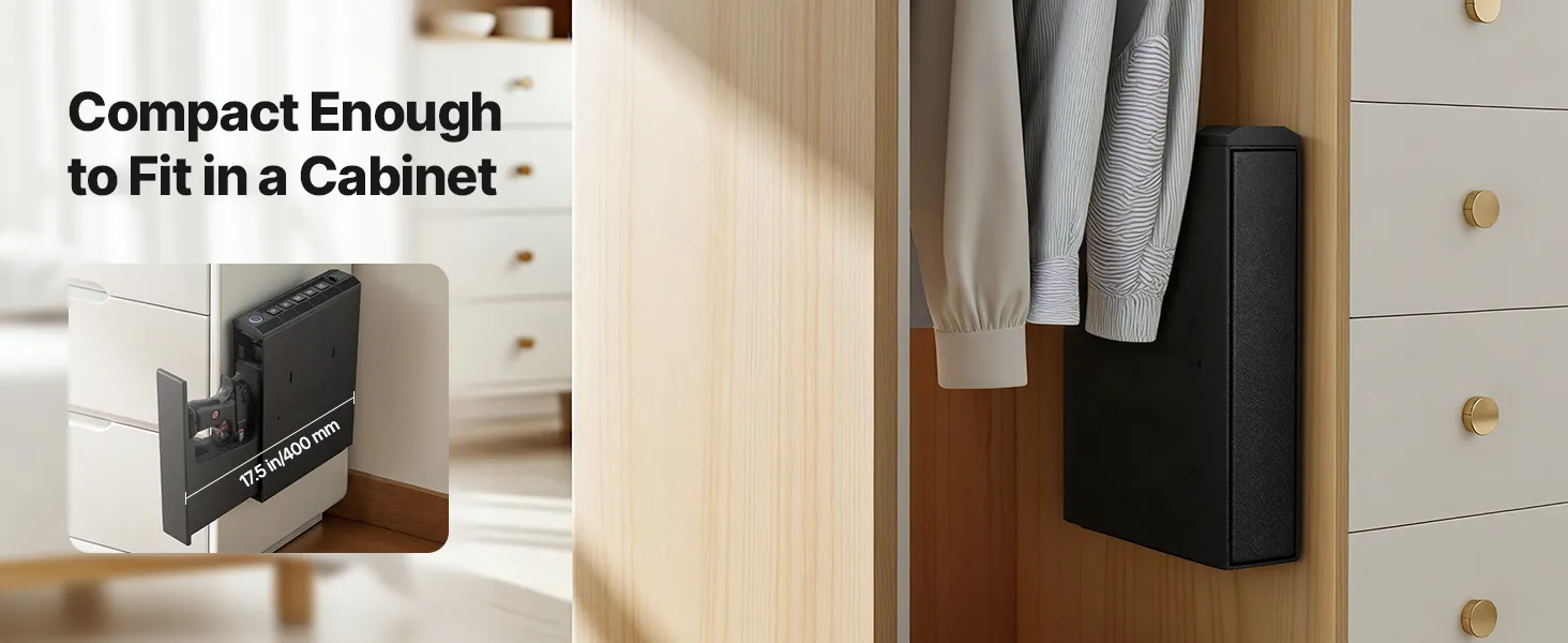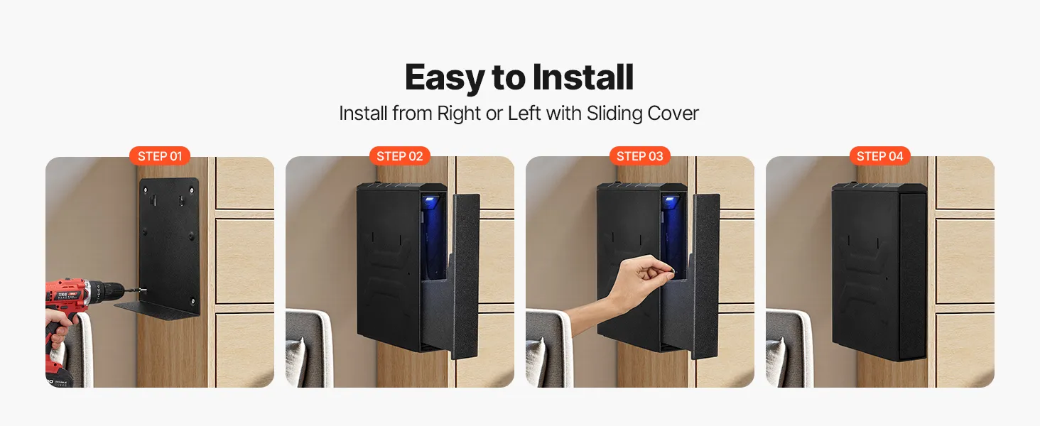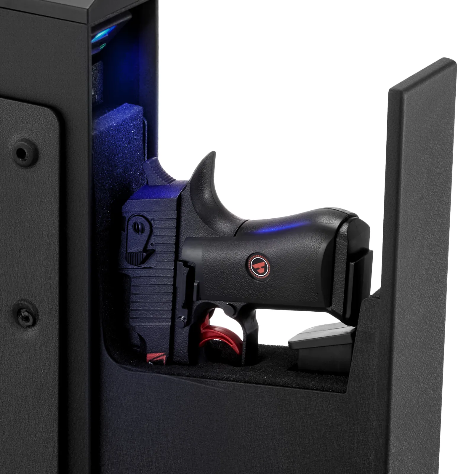Sejf na pištoľ, odtlačok/heslo/kľúč, osvetlenie, 1+zásobník, montáž