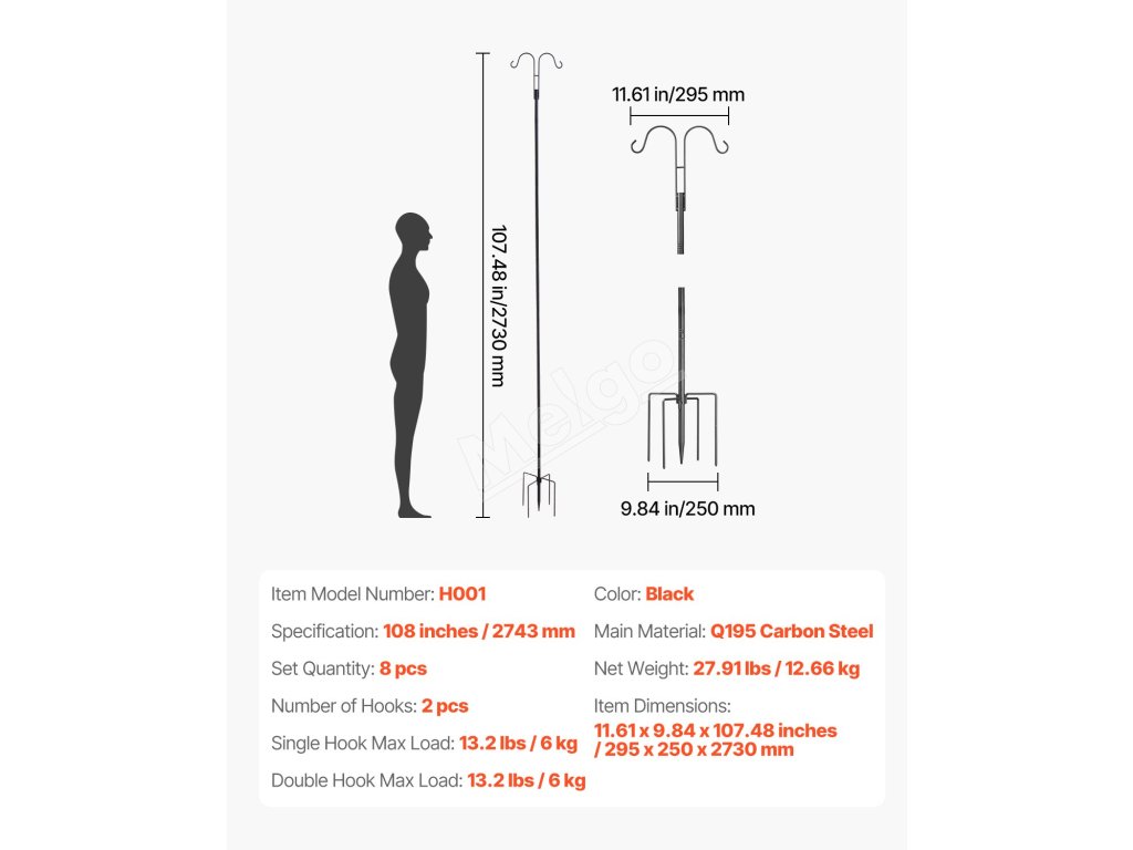 Záhradné dvojité pastierske háky na zavesenie, 8 ks, 2730 mm, 19 mm
