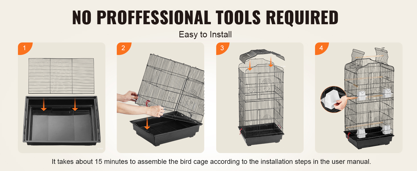Túto klietku pre papagáje možno ľahko nainštalovať bez profesionálneho náradia. Vychutnajte si radosť z chovu vtákov namiesto starostí so zložitými inštalačnými procesmi.