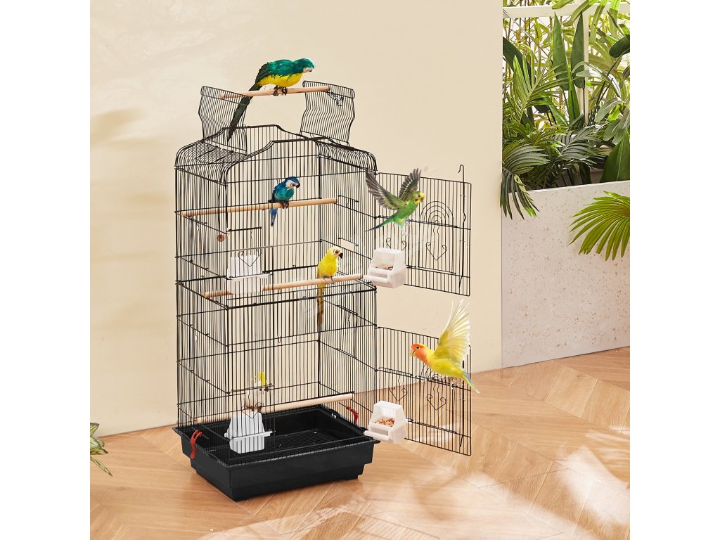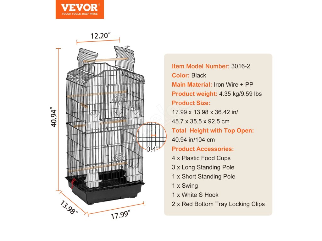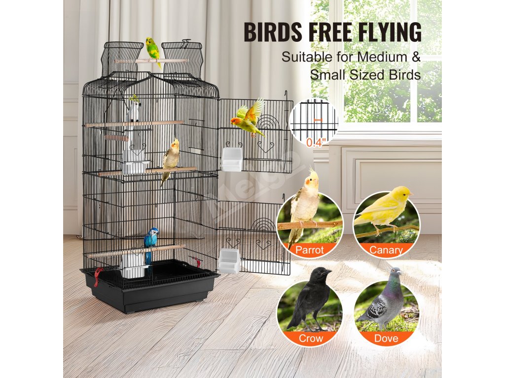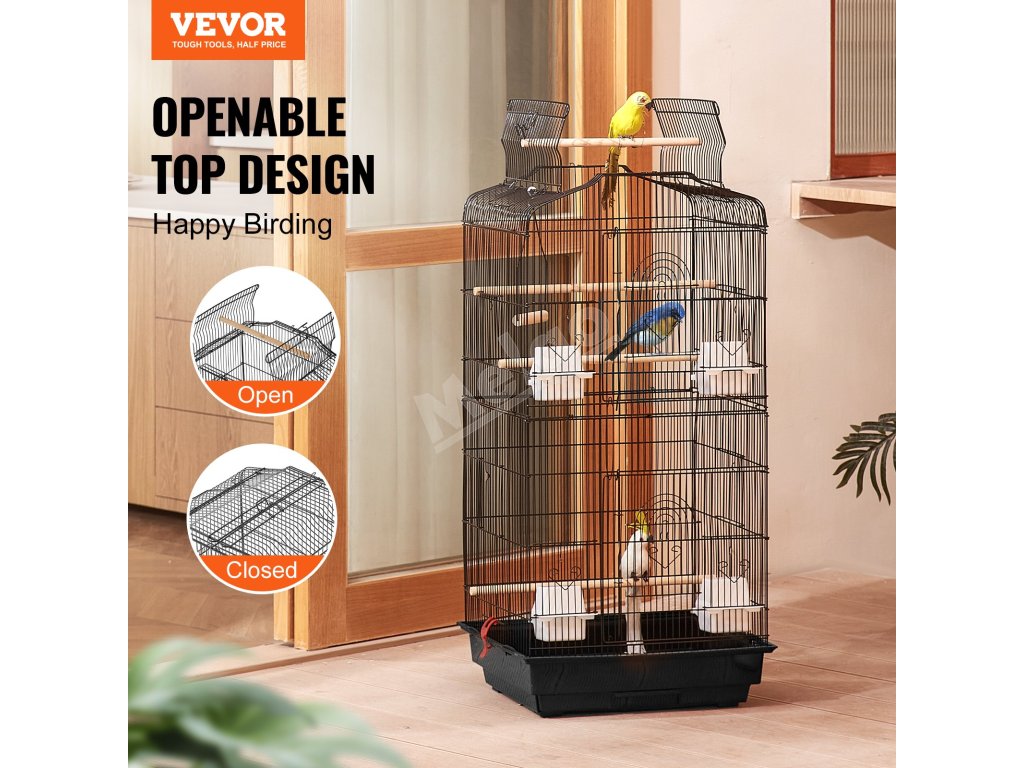 Táto klietka pre vtáky poskytuje priestranný a pohodlný životný priestor pre malé až stredne veľké vtáky. Vrchnú časť možno otvoriť, aby si vtáky mohli užívať voľný let, a dvojité dvierka uľahčujú interakciu. Zásuvkový podnos uľahčuje čistenie a pevný železný drôt zaisťuje dlhodobú odolnosť.
