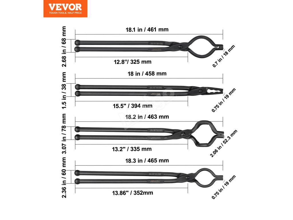 Kliešte kováčske 45.7 cm, 4 ks, uhlíková oceľ, a3 nity, 4 typy