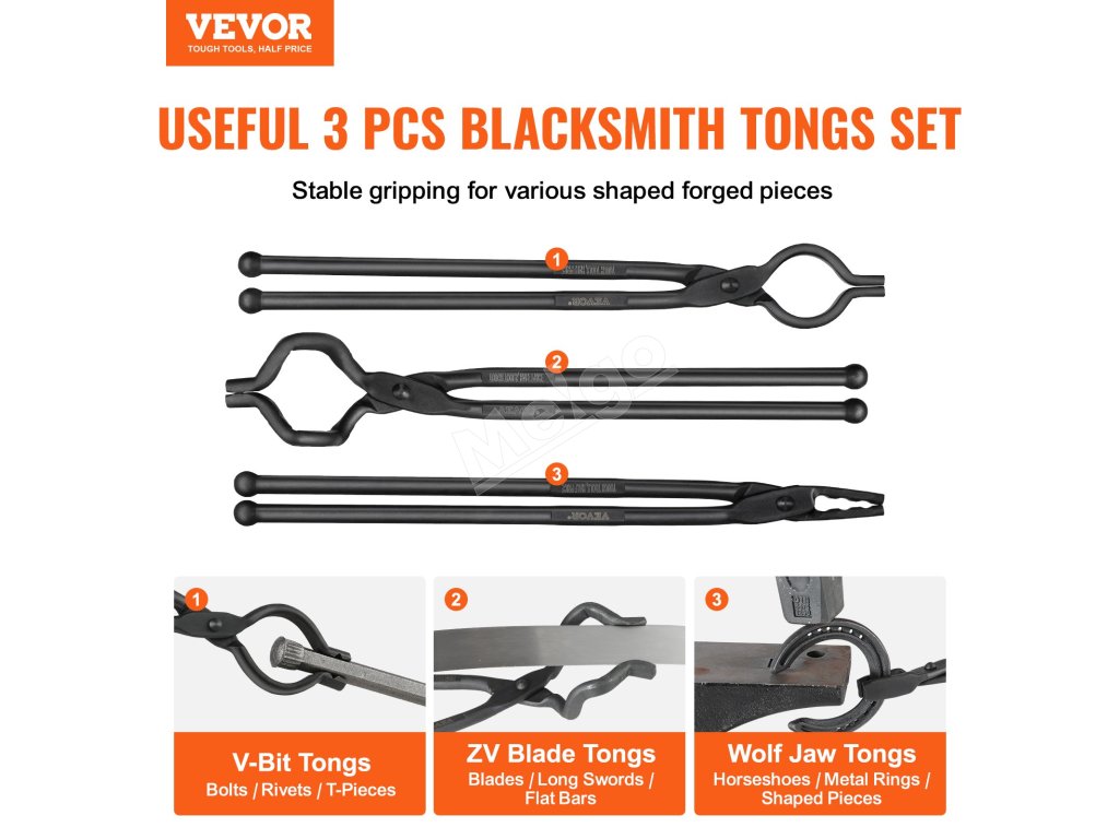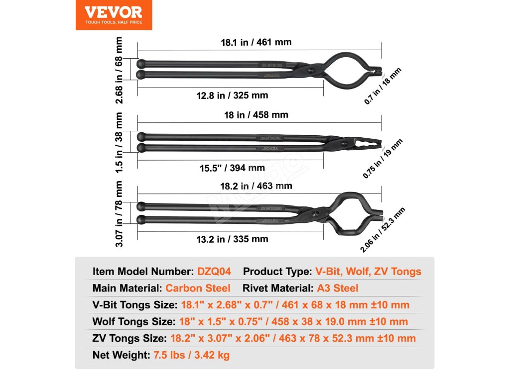 Kovárske kliešte 3 ks, 45.7 cm, uhlíková oceľ, v-bit, vlčia a z-v-bit