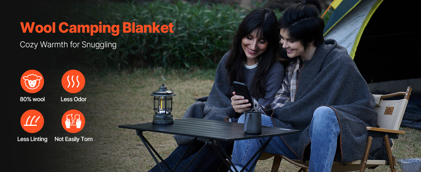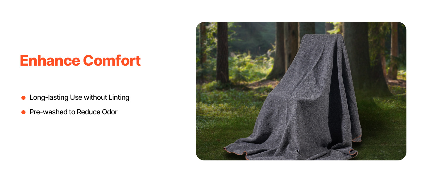 Vydajte sa do prírody s našou kempingovou dekou. Je vyrobená zo zmesi 80 % vlny, ponúka neuveriteľné teplo a zároveň je predpieraná, aby sa minimalizovali pachy a žmolky. Uzamykateľné šitie zvyšuje pevnosť a jej vlastnosti odolné proti vlhkosti spĺňajú normu V-0 pre nehorľavosť - čo zaručuje pokojné noci pod hviezdami.