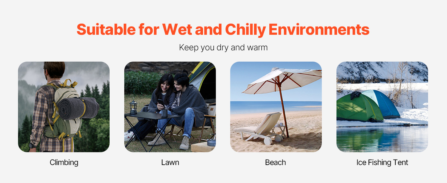 Vydajte sa do prírody bez strachu z vlhkosti. Vďaka obsahu vody menej ako 10 % vás táto vlnená deka udrží v pohodlí, či už ste na túre, ležíte na tráve, relaxujete na pláži alebo sa ukrývate v stane pri rybolove.