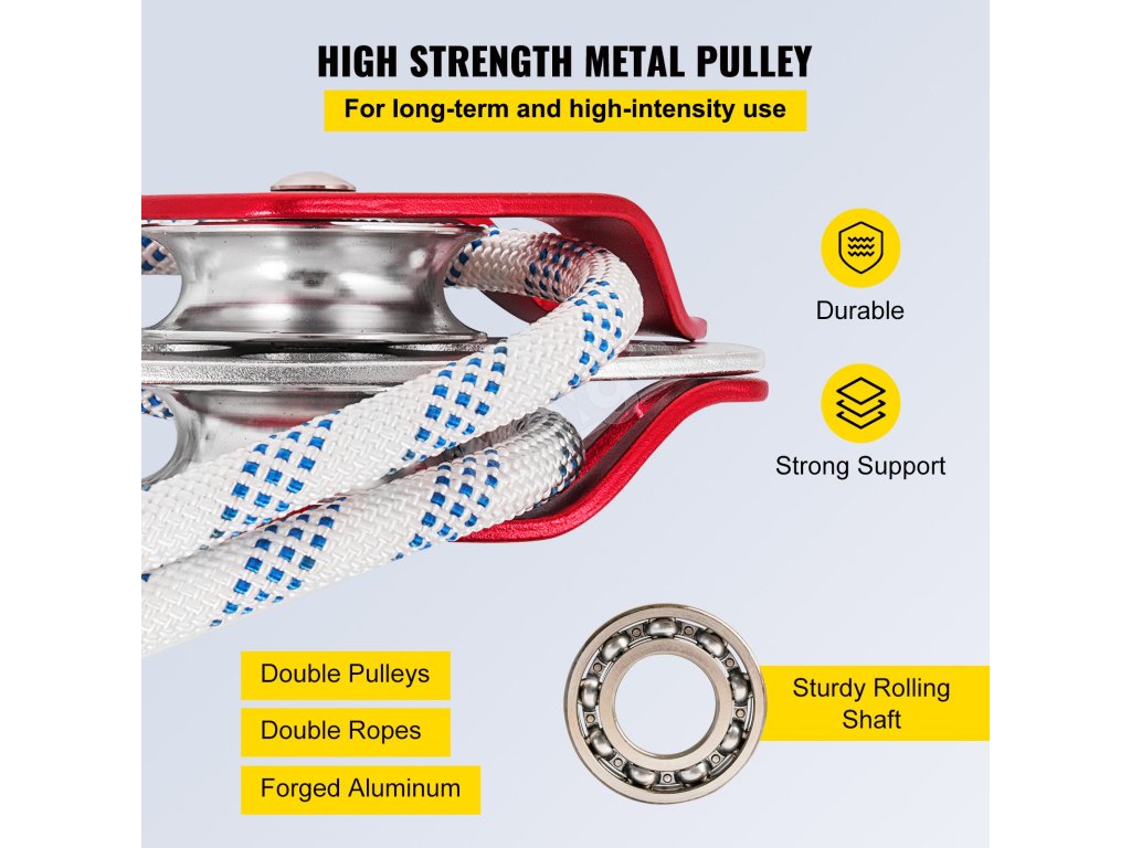 Dvojitá kladka je najlepší nástroj, ktorý zvyšuje vašu schopnosť zdvíhať hory. Materiál tejto ťažkej kladky, eloxovaný hliník, poskytuje pevnosť a odolnosť. Jej hladké valčekové hriadele majú vysokú nosnosť a lepšie fungujú. Valčekové hriadele znižujú trenie, vďaka čomu je vaše lezenie hladké a efektívne. S maximálnou nosnosťou 7500 libier zvládne 1/2-palcové opletené lano s ľahkosťou ťažké bremená. Poskytuje tiež stabilnú oporu pre zdvíhacie nosníky. Užívateľsky prívetivý dizajn vám umožní jednoduché nastavenie. Po splnení úloh ich môžete jednoducho nainštalovať a odstrániť. Poďme preskúmať niektoré inovatívne funkcie tohto 200ft dvojitého kladkového bloku.