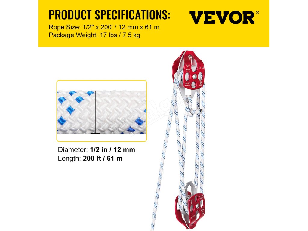 Dvojitý kladkostroj s pleteným lanom 0,43-0,5 in 100-200 ft 30-35 kN