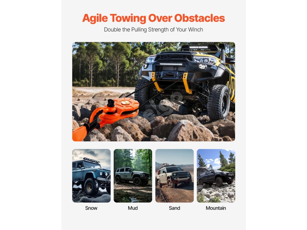 Pomocou kladky s blokom na zachytávanie zvýšte ťažnú silu svojho navijaka! Znižuje namáhanie navijaka a predlžuje jeho životnosť. Či už sa pohybujete v bahne, piesku alebo snehu, tento blok pomáha vášmu vozidlu bez námahy prekonávať rôzne terény.