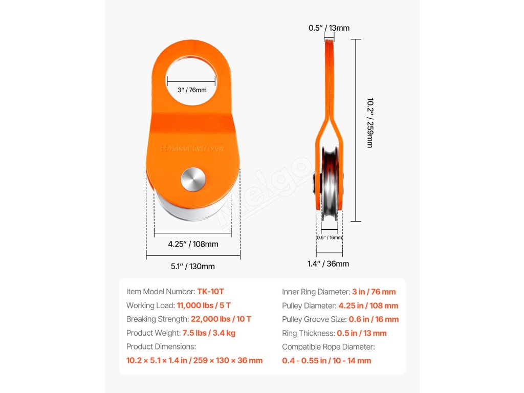 Tento blok zvládne pracovné zaťaženie až do 11 000 libier (5T) a pevnosť pri pretrhnutí 22 000 libier (10T). Je ideálny na ťažké úlohy, ako je vyslobodzovanie vozidiel a ťahanie stromov, a svoju prácu vykonáva ľahko a efektívne.