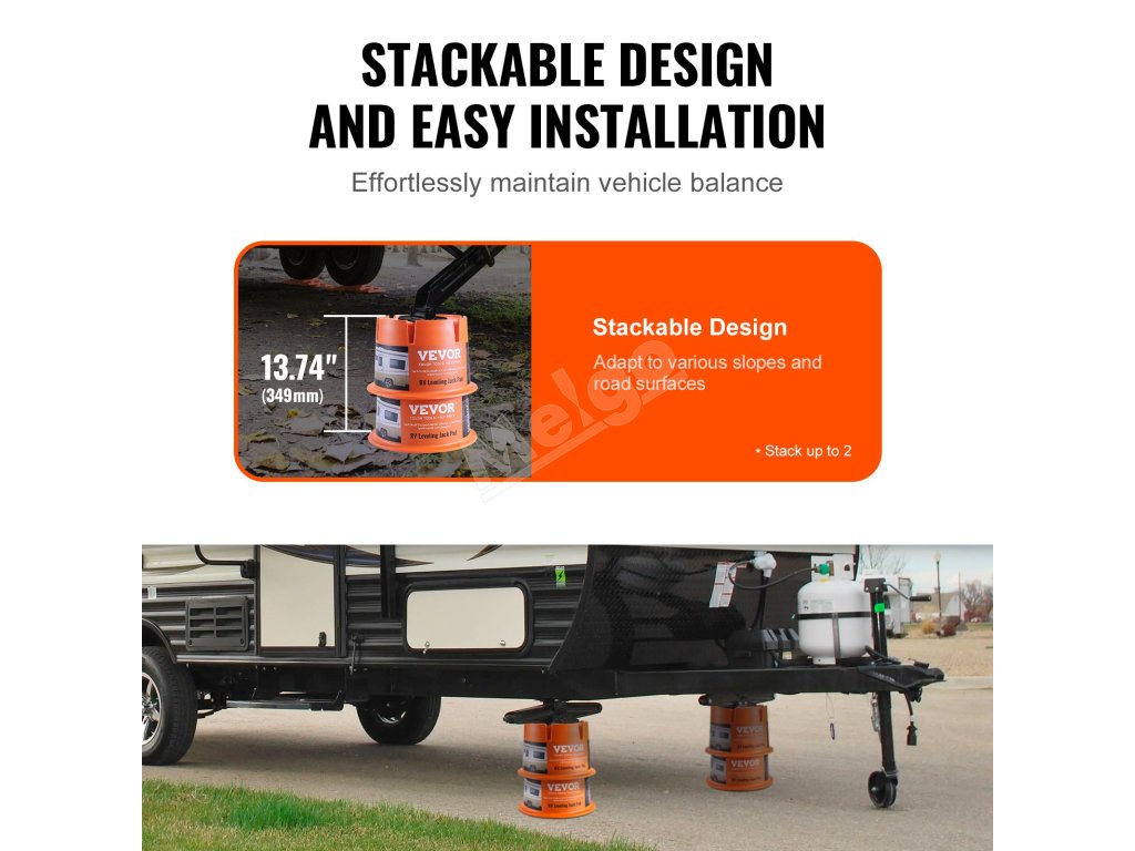 Tieto bloky na zdviháky pre obytné automobily vytvárajú dodatočný priestor na podlahe a poskytujú účinnú protišmykovú funkciu, takže sú ideálne na použitie na nerovnom povrchu, či už ide o blatistú pôdu alebo drsné zázemie kempov.