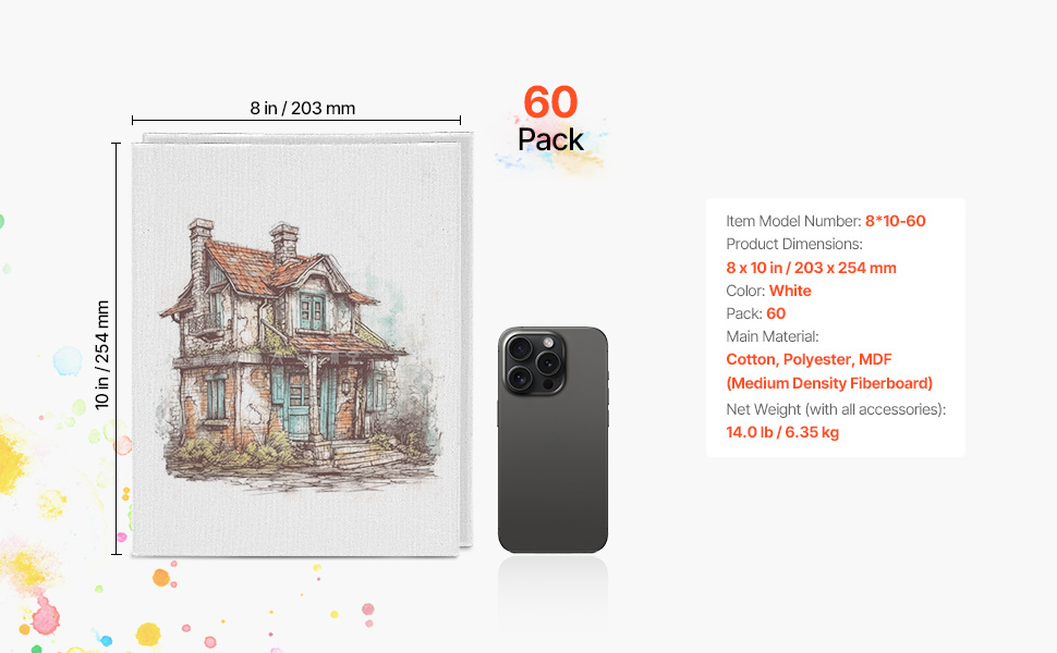 Plátna na maľovanie 8×10 inch biele, 60 ks, na akryl, olej, akvarel