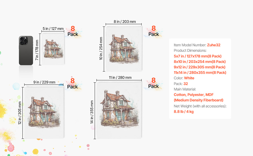 Súprava maliarskych plátien 32 ks 5×7/8×10/9×12/11×14 na akryl a olej