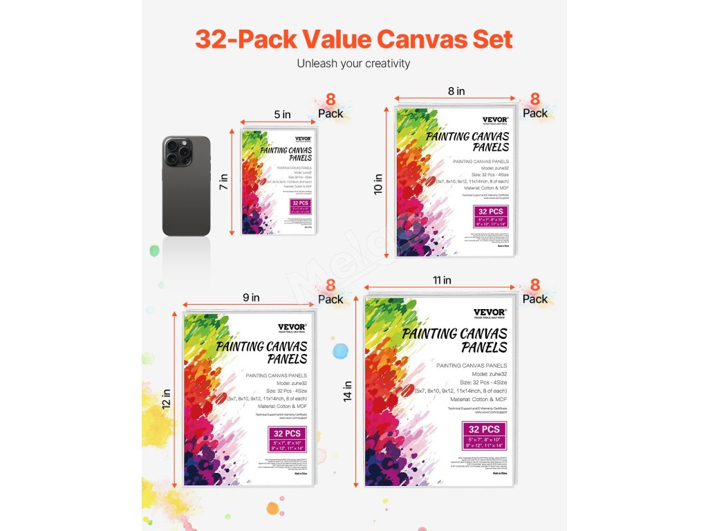 Súprava maliarskych plátien 32 ks 5×7/8×10/9×12/11×14 na akryl a olej