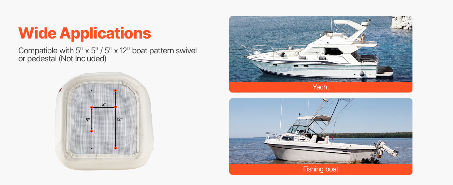 Skvele sa hodí na inštaláciu na rybárske člny alebo malé jachty na jazdné pozície alebo paluby. Naše vedro sedadlo do člna je ideálnym spoločníkom pri námorných aktivitách, či už sa plavíte na člne, rybárčite alebo jazdíte autom.