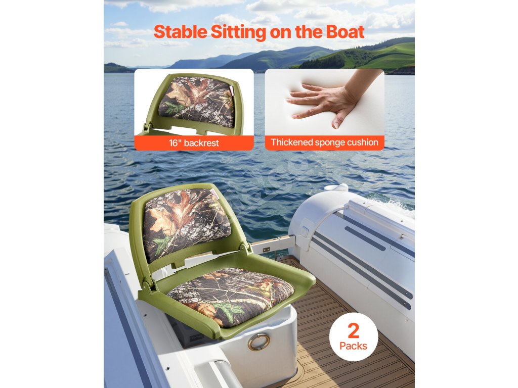 Skladacia konštrukcia lodného sedadla poskytuje skvelú oporu, pričom operadlo aj sedák sú vyrobené z vysokoelastickej hrubej peny. Odoláva splošteniu a poskytuje mäkkú oporu na zníženie únavy z dlhodobého sedenia.