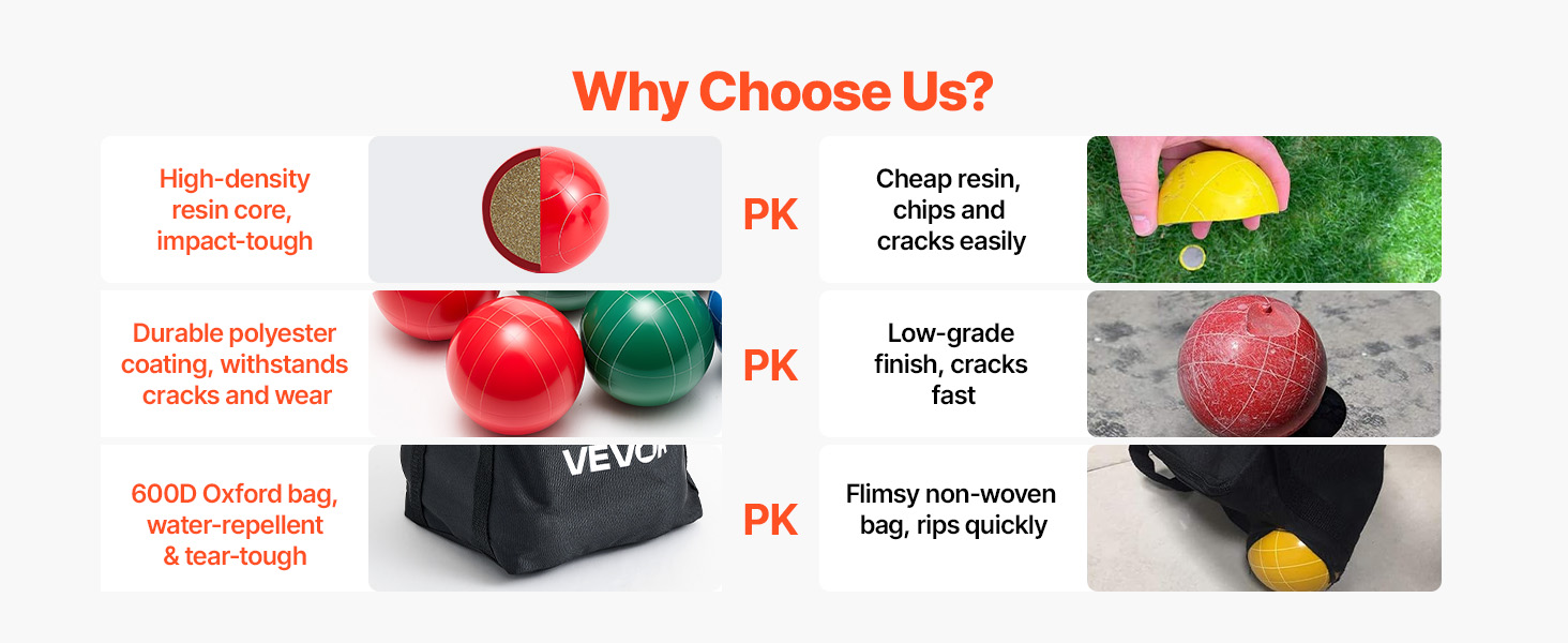 Či už je to trávnik, pláž alebo dvor, tieto gule z pevnej živice vydržia na rôznych povrchoch so silnou odolnosťou proti nárazom a opotrebovaniu.