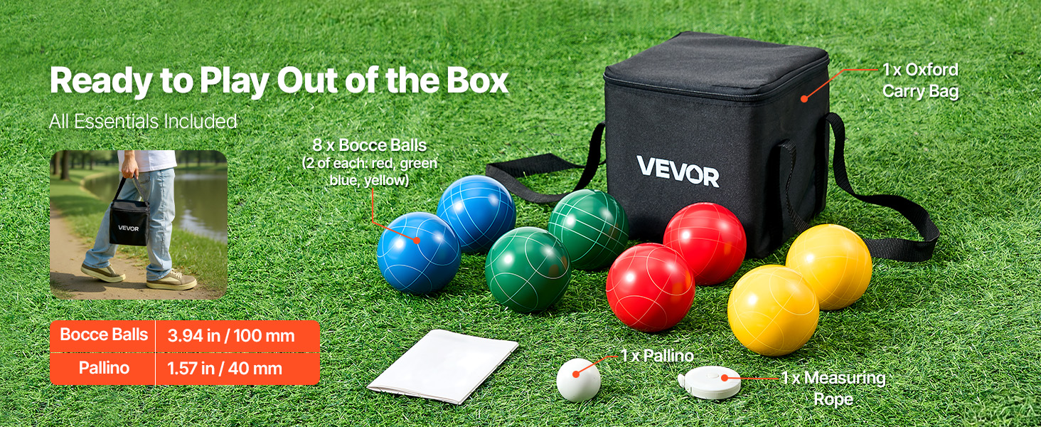 Vezmite si kompletnú sadu na hru s loptičkami bocce a vyrazte von! Užívajte si nekonečné chvíle s rodinou a priateľmi, nech ste kdekoľvek.