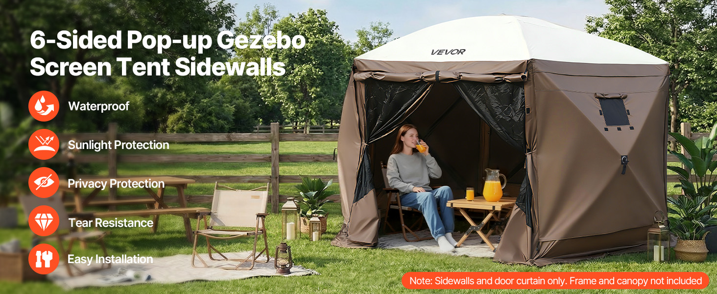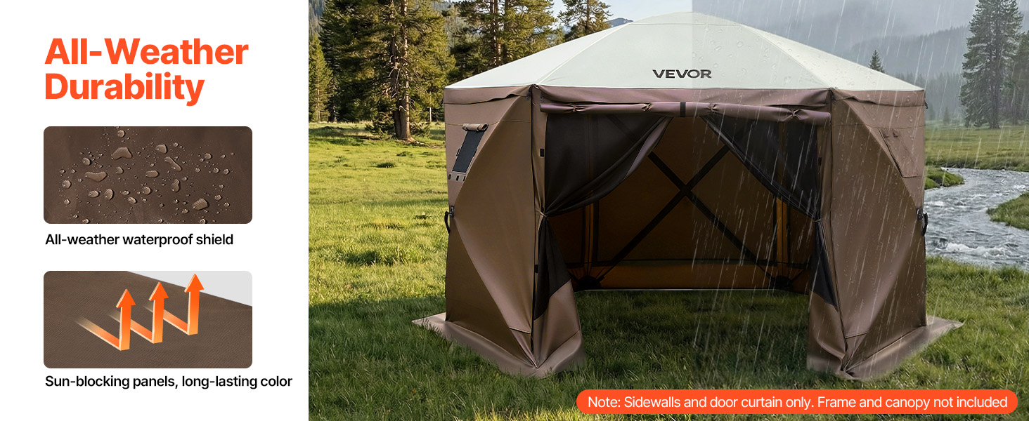 Naše bočné steny sú vhodné na pikniky, kempovanie, trhy, veľtrhy a iné komerčné účely, kde poskytujú lepší tieň, súkromie a ochranu v akomkoľvek prostredí.
