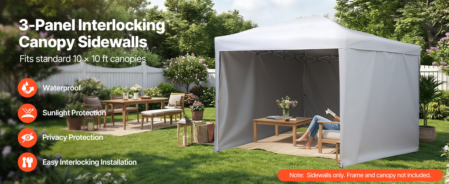 Naše bočné steny prístrešku sú navrhnuté tak, aby pasovali na väčšinu prístreškov s priamymi nohami o rozmeroch 10 x 10 ft. Pred nákupom si prosím zmerajte rám svojho prístrešku.