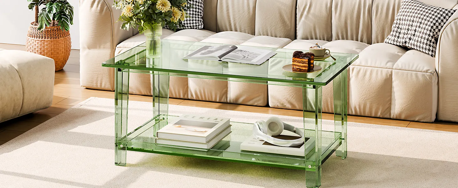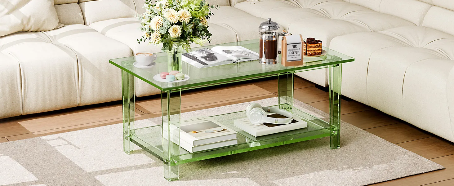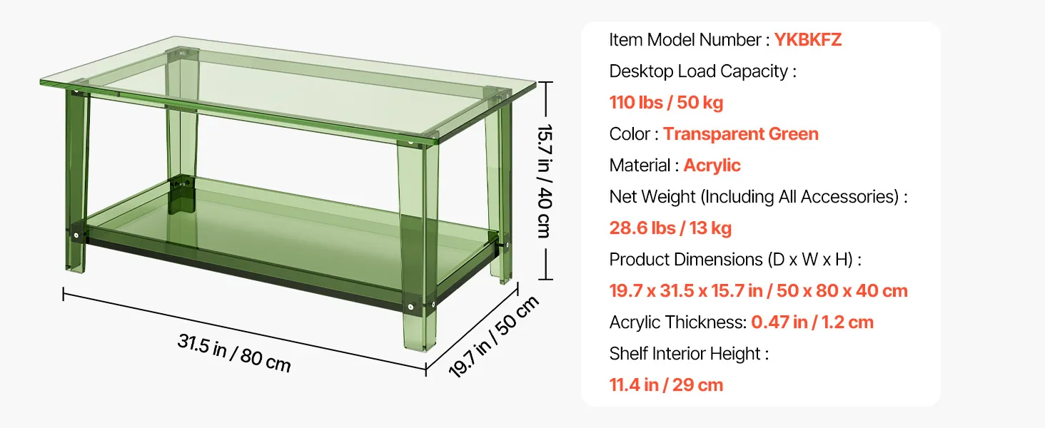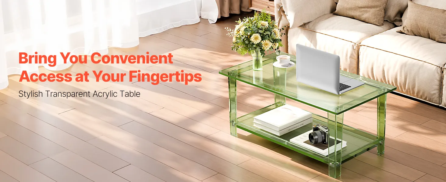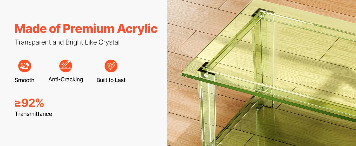 Štýlový akrylový stolík vyrobený z prvotriedneho číreho akrylu s priehľadným dizajnom pripomínajúcim krištáľ, ktorý doplní každý interiér. Tento moderný stolík s hrubou doskou a robustnými nohami poskytuje pevnú oporu a stabilitu na každodenné používanie.