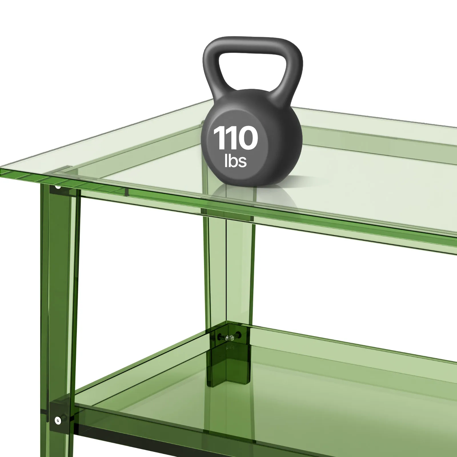 Akrilový konferenčný stolík 2-poschodový s policou, 50×80×40 cm