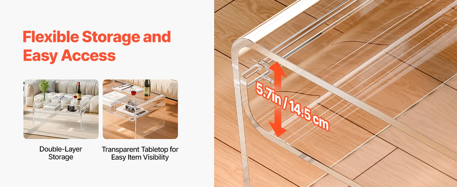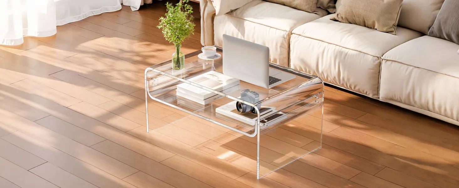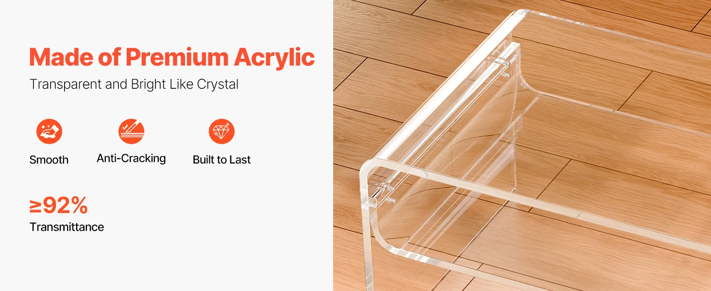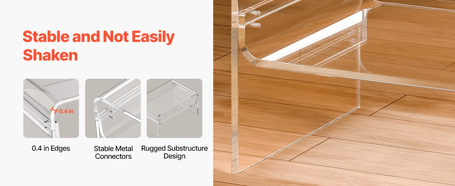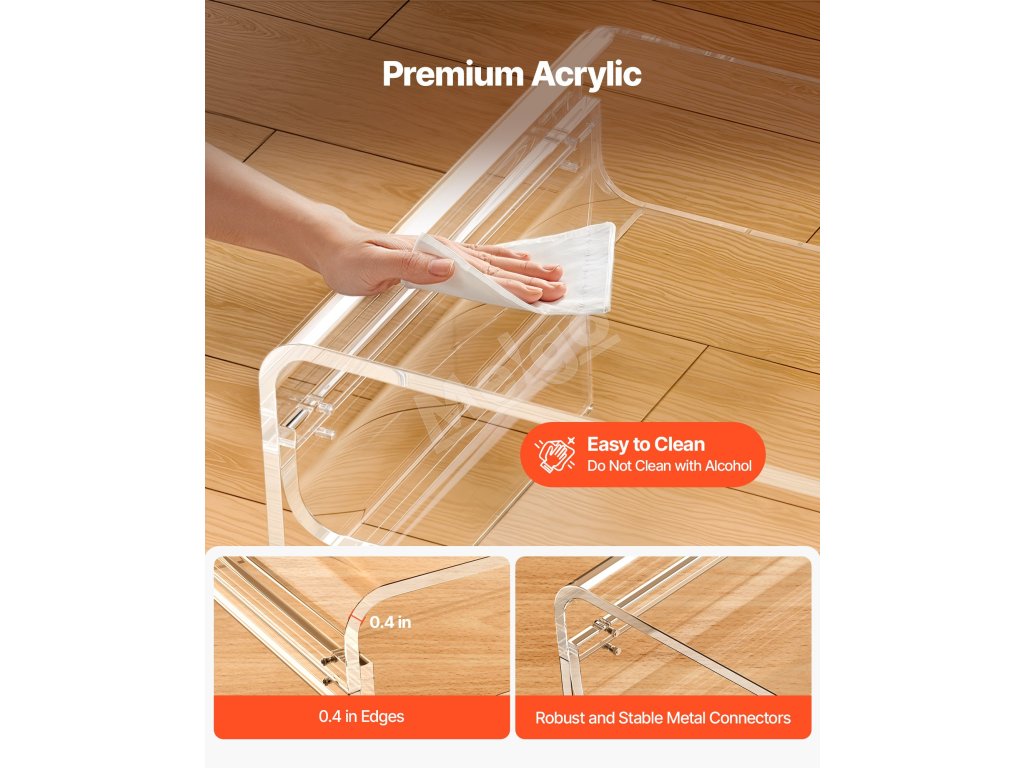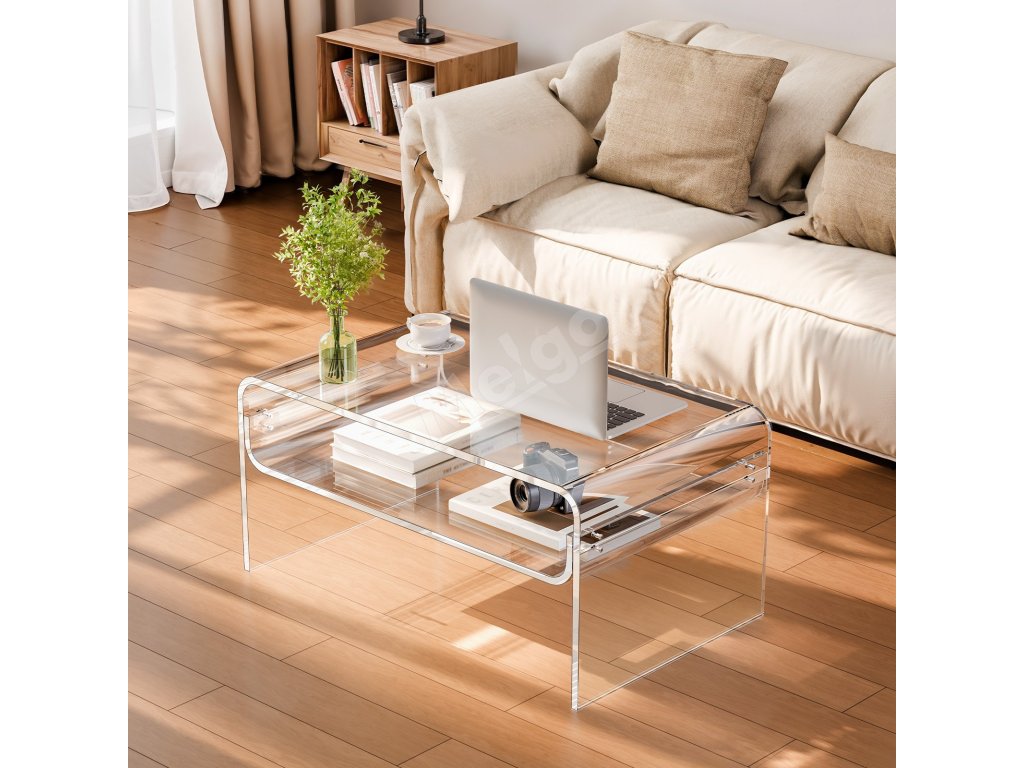 Štýlový akrylový stolík vyrobený z prvotriedneho číreho akrylu s priehľadným dizajnom pripomínajúcim krištáľ, ktorý doplní každý interiér. Tento moderný stolík s hrubou doskou a robustnými nohami poskytuje pevnú oporu a stabilitu na každodenné používanie.