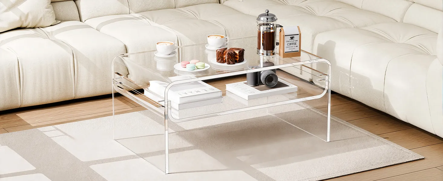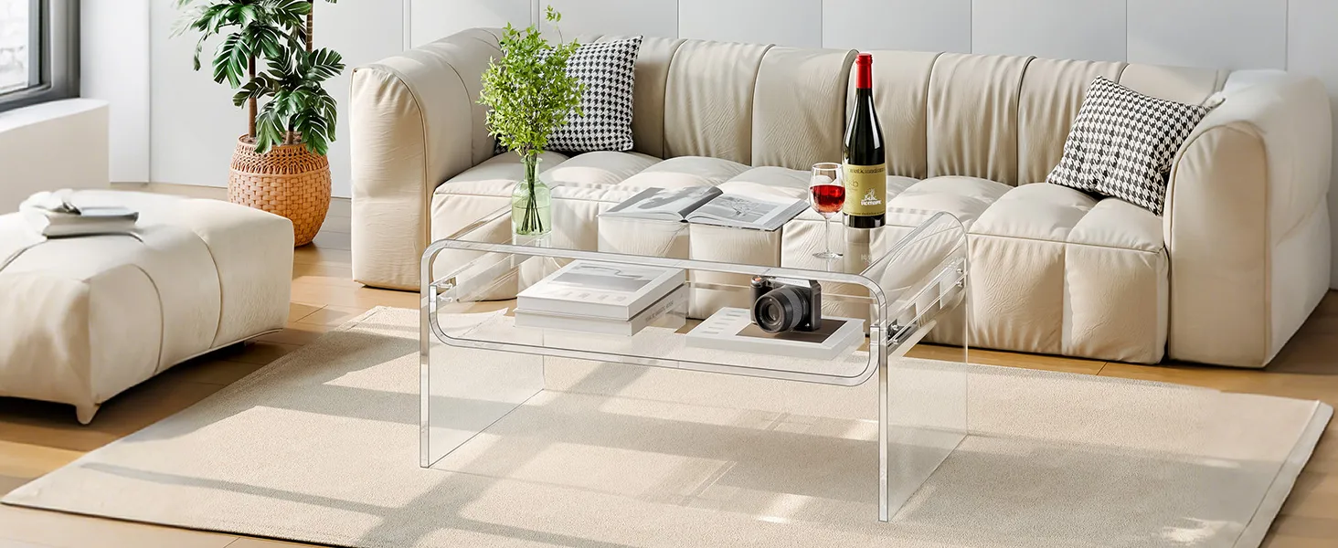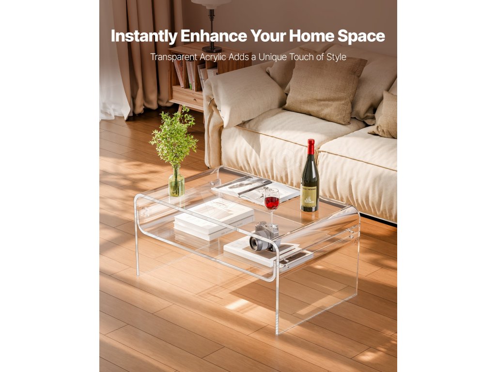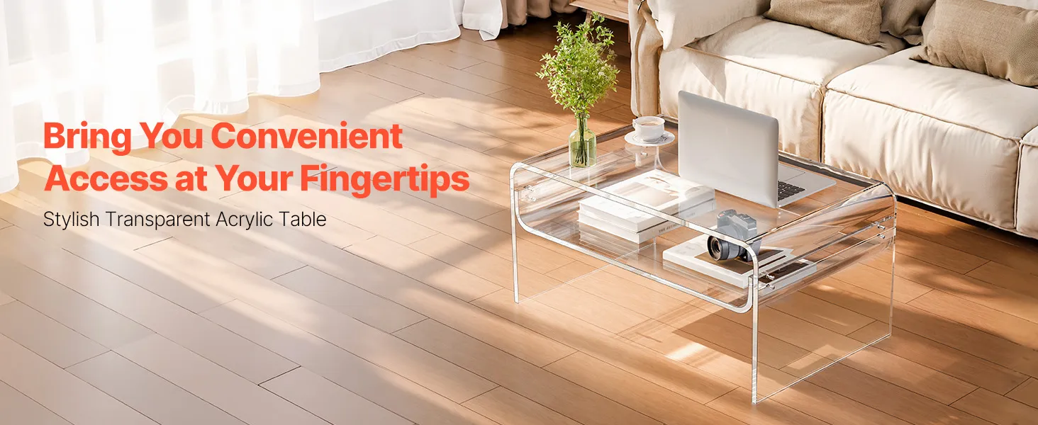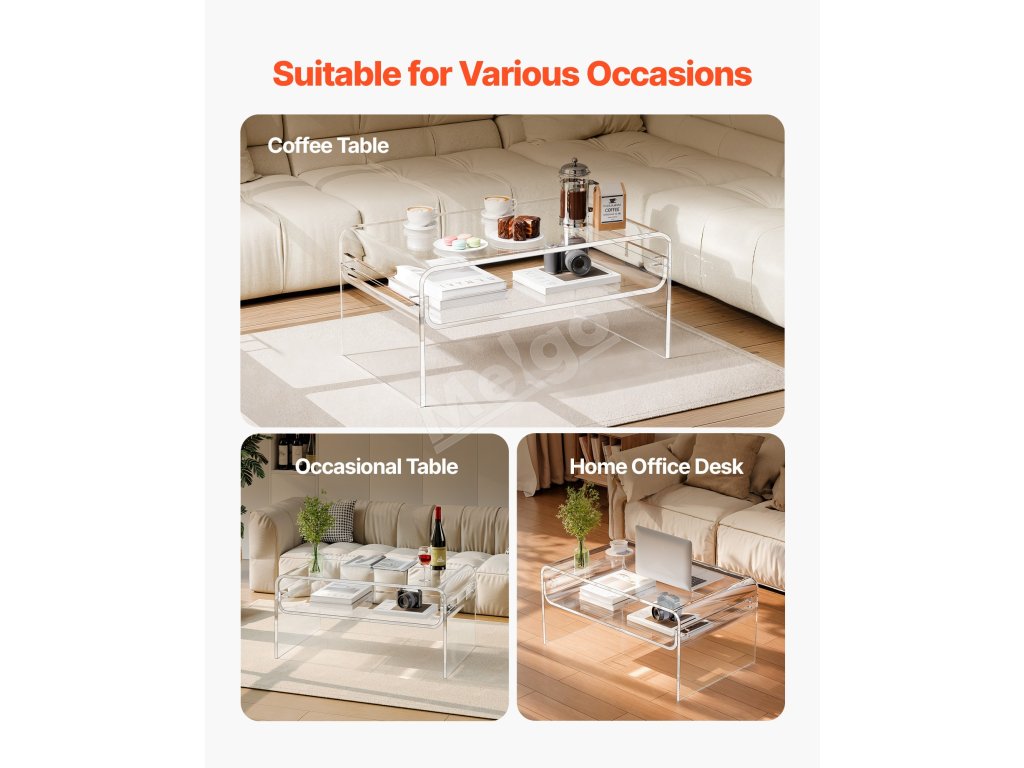 Štýlový akrylový stolík vyrobený z prvotriedneho číreho akrylu s priehľadným dizajnom pripomínajúcim krištáľ, ktorý doplní každý interiér. Tento moderný stolík s hrubou doskou a robustnými nohami poskytuje pevnú oporu a stabilitu na každodenné používanie.