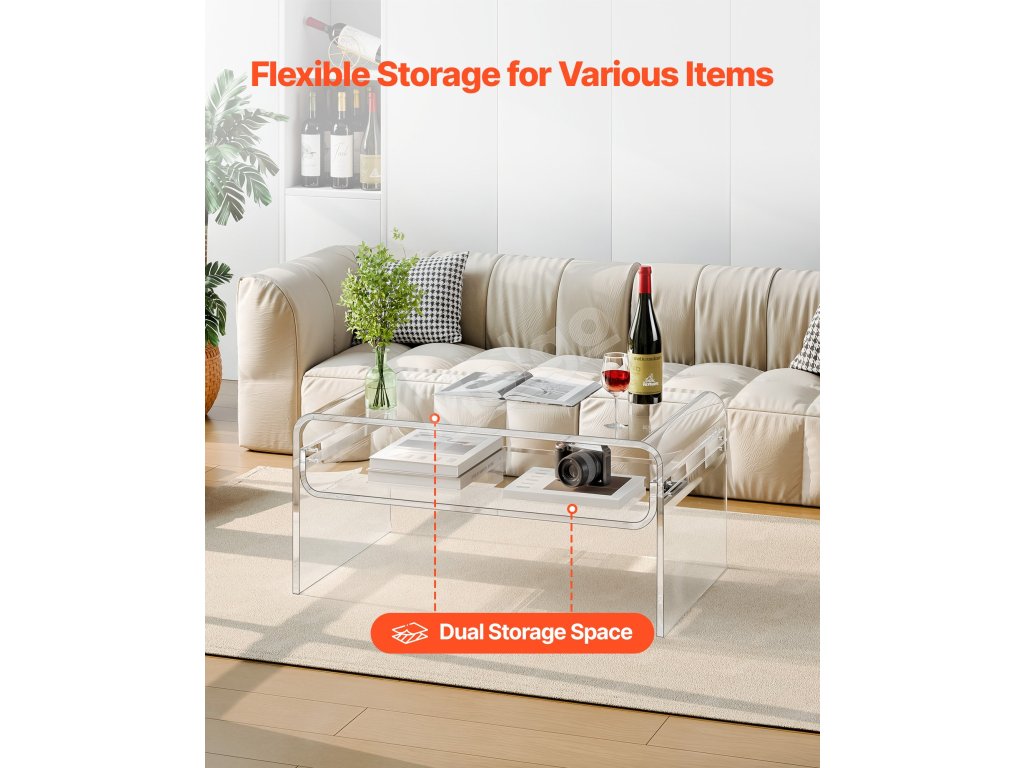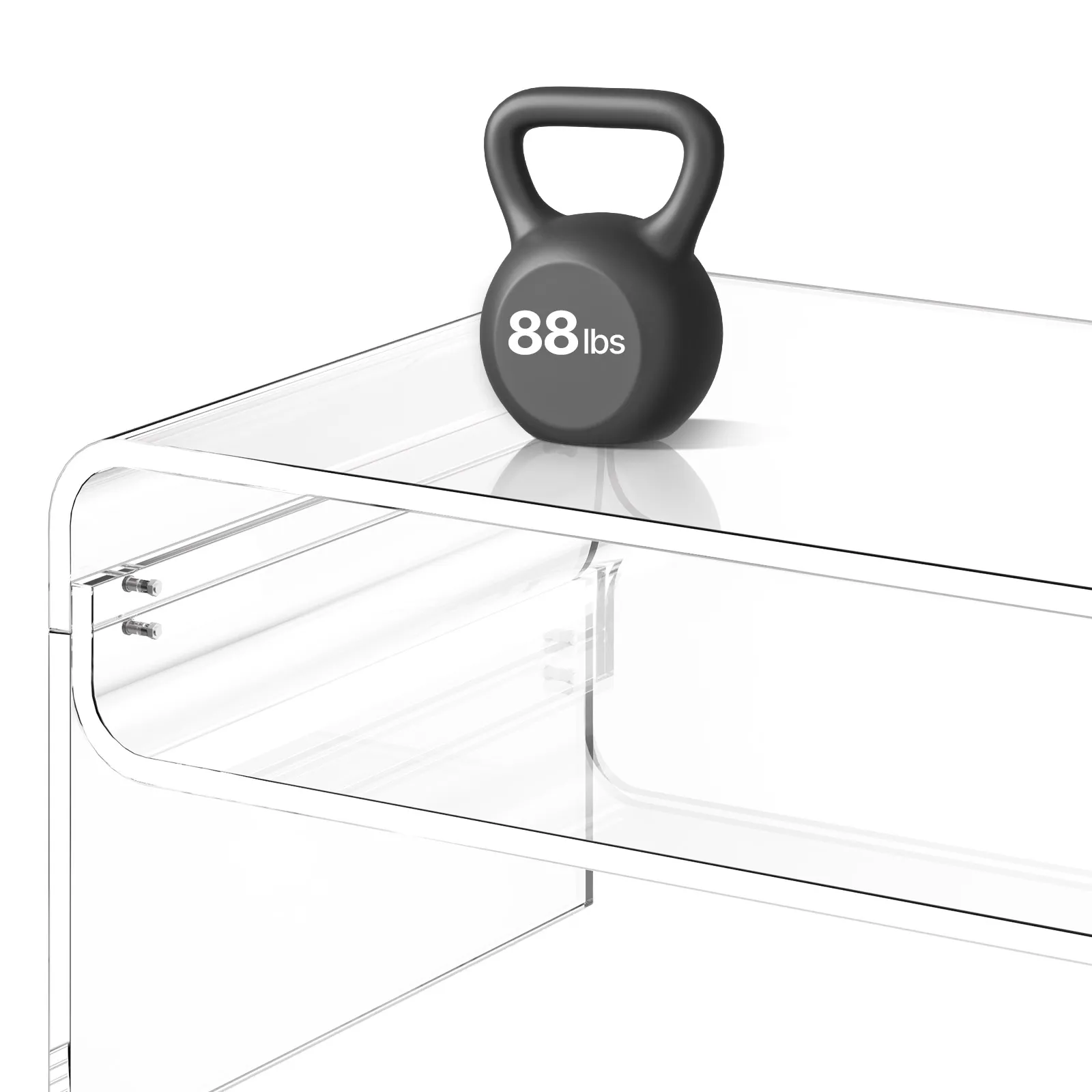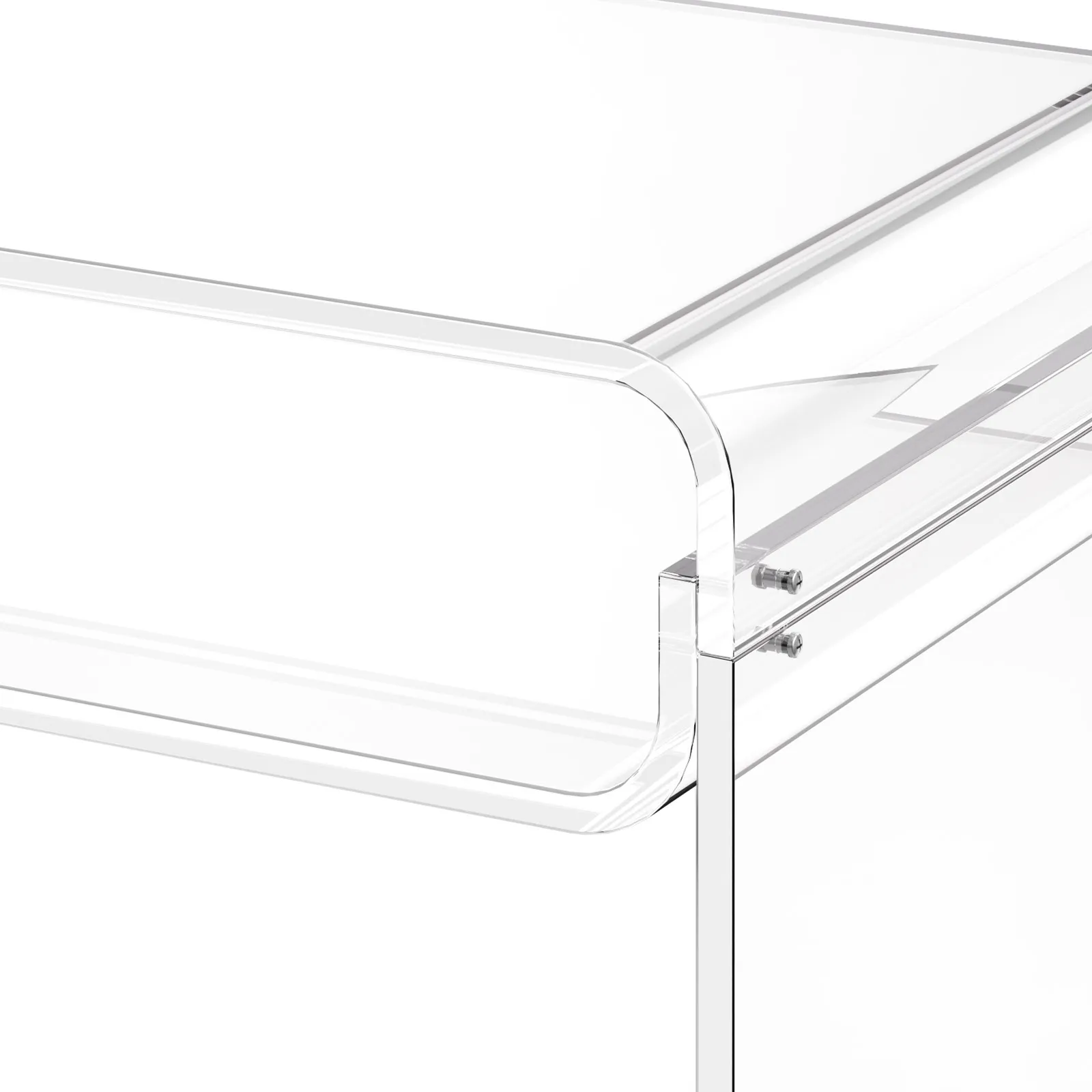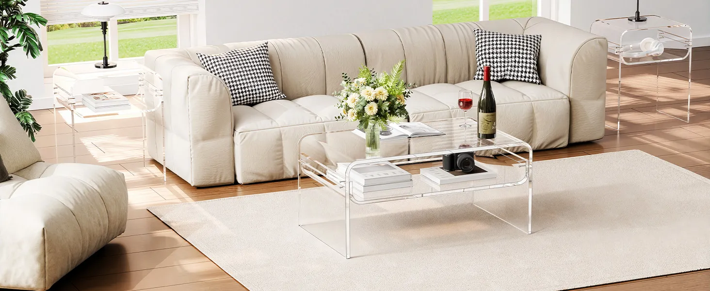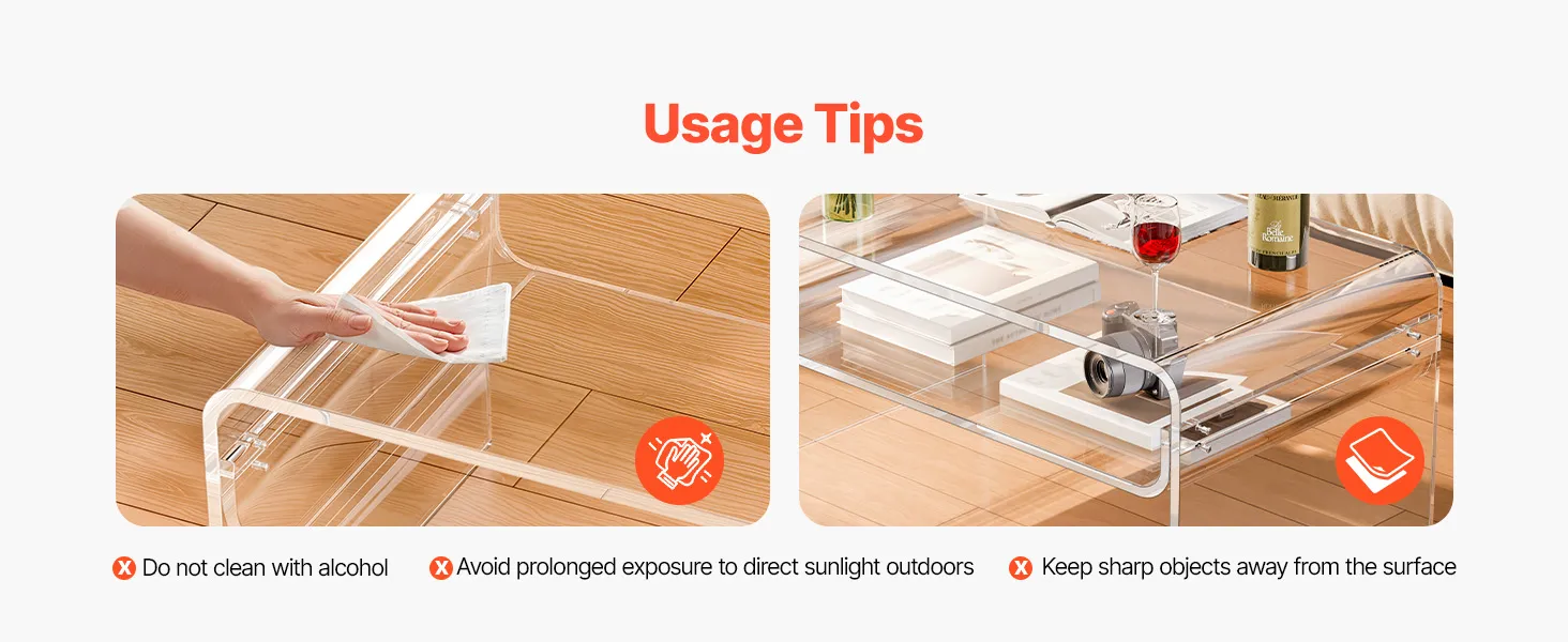 Štýlový akrylový stolík vyrobený z prvotriedneho číreho akrylu s priehľadným dizajnom pripomínajúcim krištáľ, ktorý doplní každý interiér. Tento moderný stolík s hrubou doskou a robustnými nohami poskytuje pevnú oporu a stabilitu na každodenné používanie.