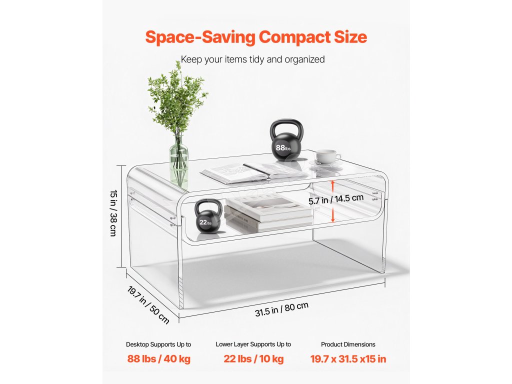 Akrylový konferenčný stôl obdĺžnikový 2 úrovne 50×80×38 cm s policou