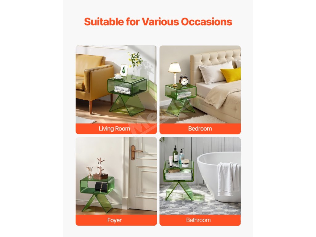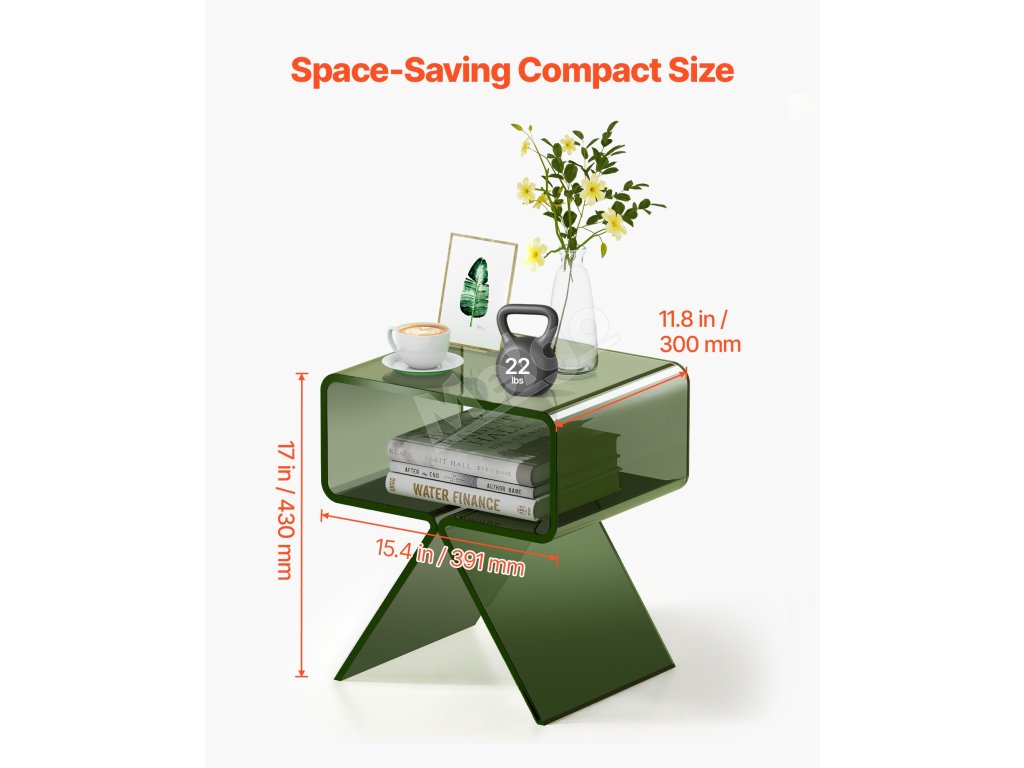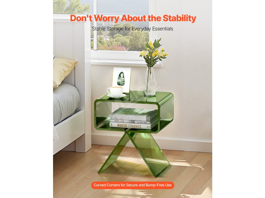 Akrylový nočný stolík s poličkou transparentný 30×39.1×43 cm
