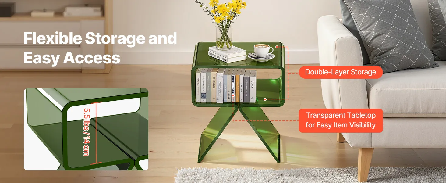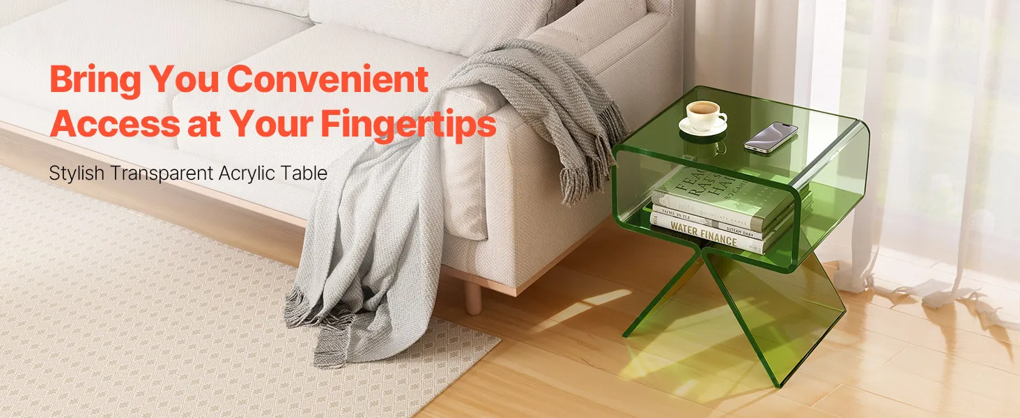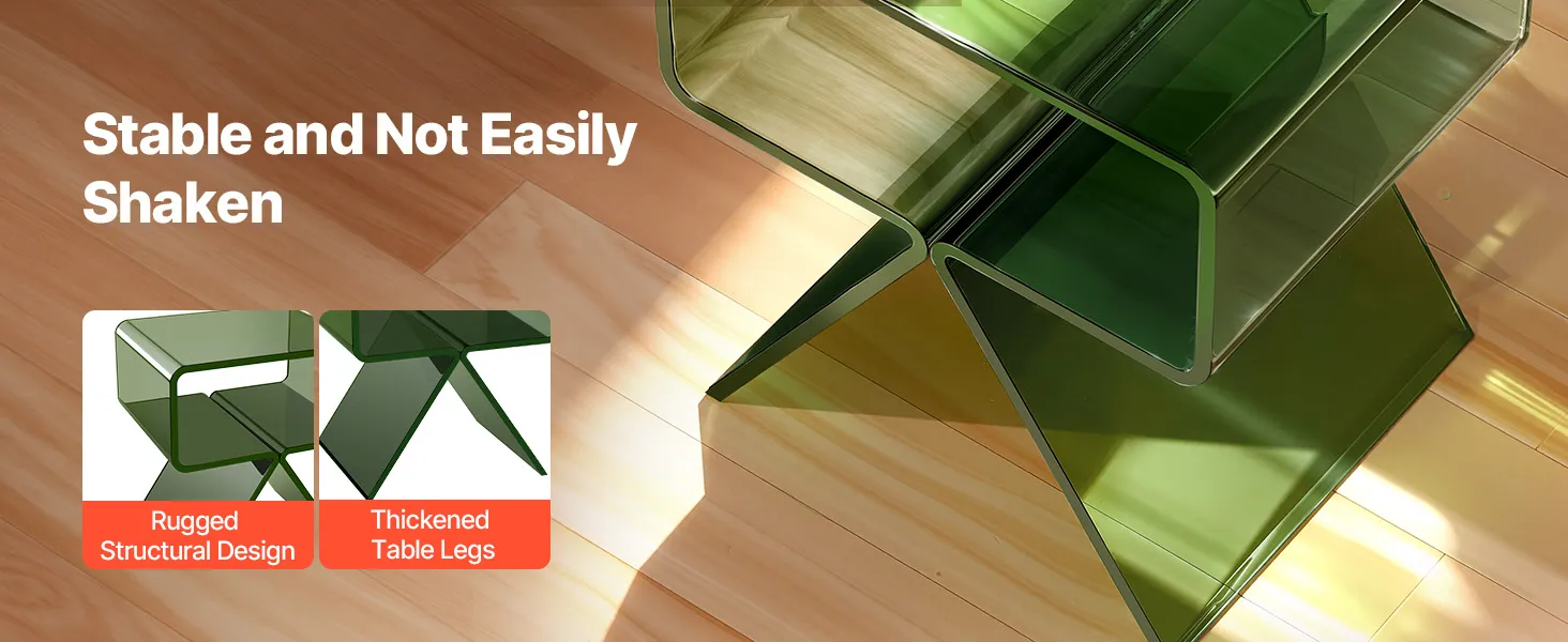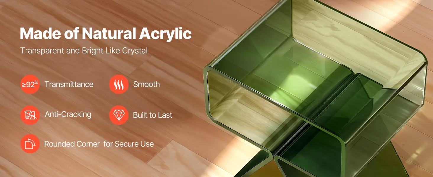 Štýlový akrylový stolík vyrobený z prvotriedneho číreho akrylu s priehľadným dizajnom pripomínajúcim krištáľ, ktorý doplní akýkoľvek interiér. Tento moderný stôl s hrubou doskou ponúka pevnú oporu a stabilitu na každodenné používanie.