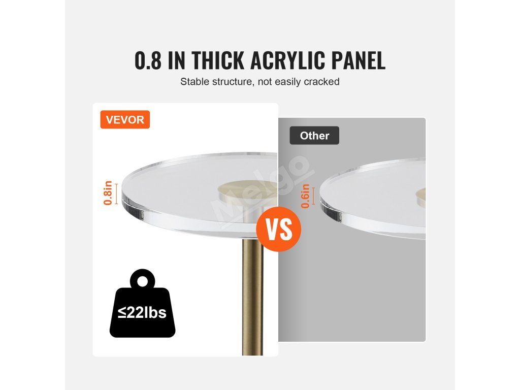 Akrylový koncový stolík je vyrobený z prírodného akrylového materiálu. Jeho priehľadný dizajn vyžaruje krištáľovo čistý lesk, ktorý sa hodí k rôznym štýlom a priestorom v domácnosti. Vďaka 0,8 palca/20 mm hrubšej doske zabezpečuje zvýšenú nosnosť a poskytuje rovnakú stabilitu ako drevený stolík.