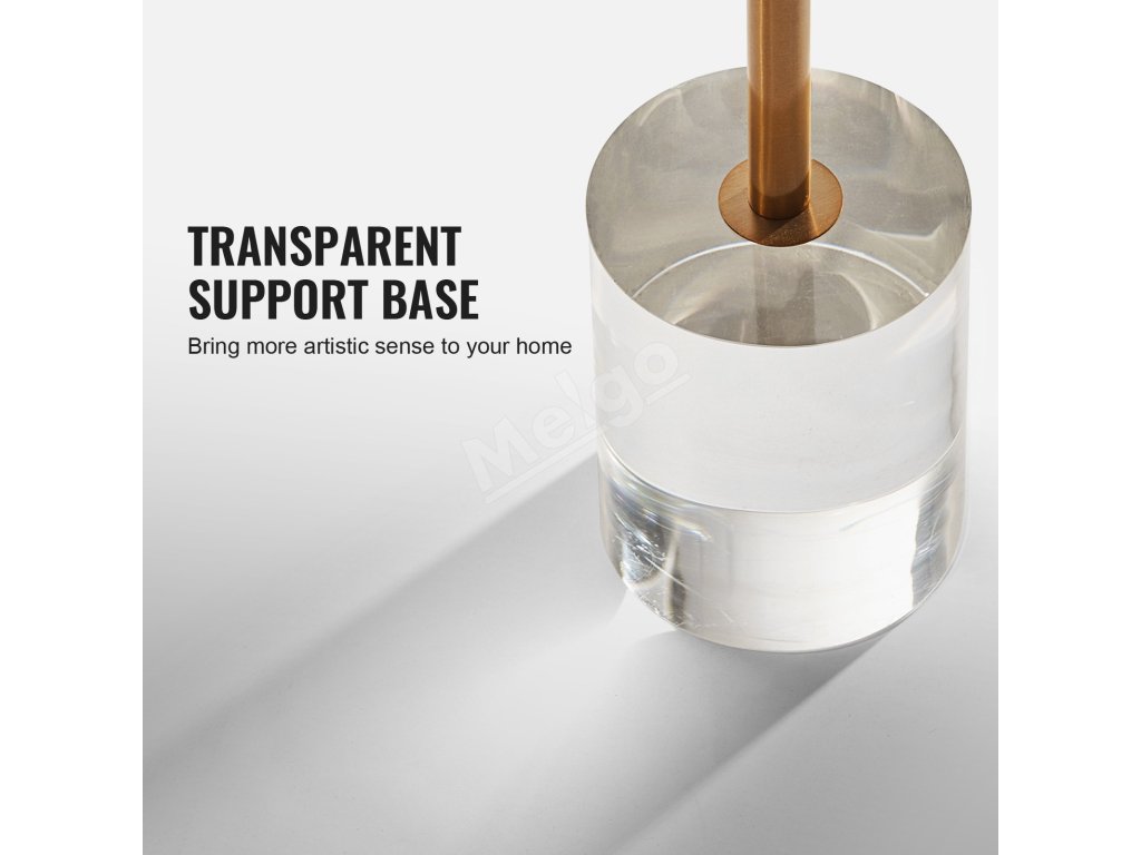 Akrylový okrúhly stolík sa opiera o hrubú akrylovú spodnú základňu a kovové rúrky z nehrdzavejúcej ocele, zabezpečuje silnú nosnosť stolovej dosky a poskytuje spoľahlivú oporu, či už na stolíku pracujete, alebo si vychutnávate nápoj.