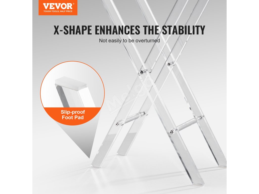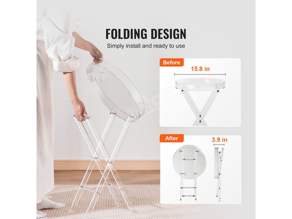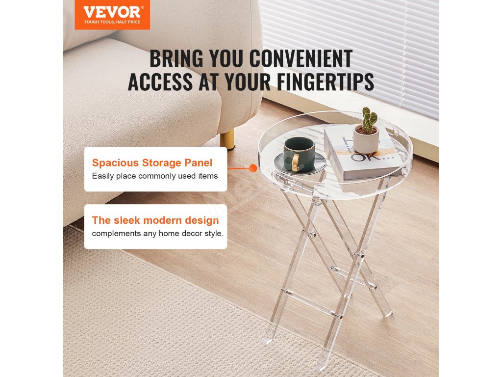 Akrylový odkladací stolík je vyrobený z prírodného akrylového materiálu. Jeho priehľadný dizajn vyžaruje krištáľovo čistý lesk, ktorý sa hodí k rôznym štýlom a priestorom v domácnosti. Vďaka 5 mm zosilnenej doske zabezpečuje zvýšenú nosnosť a poskytuje rovnakú stabilitu ako drevený stôl.