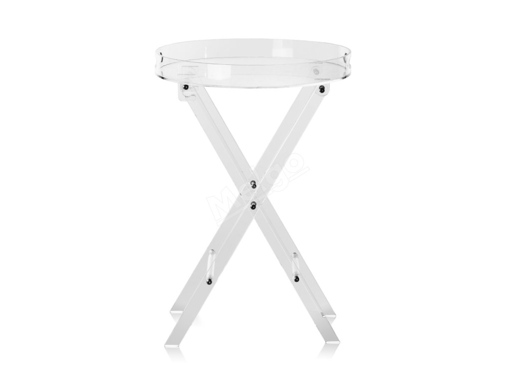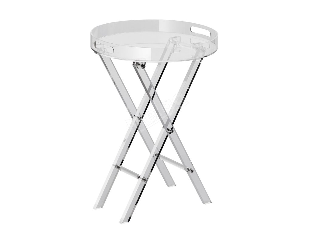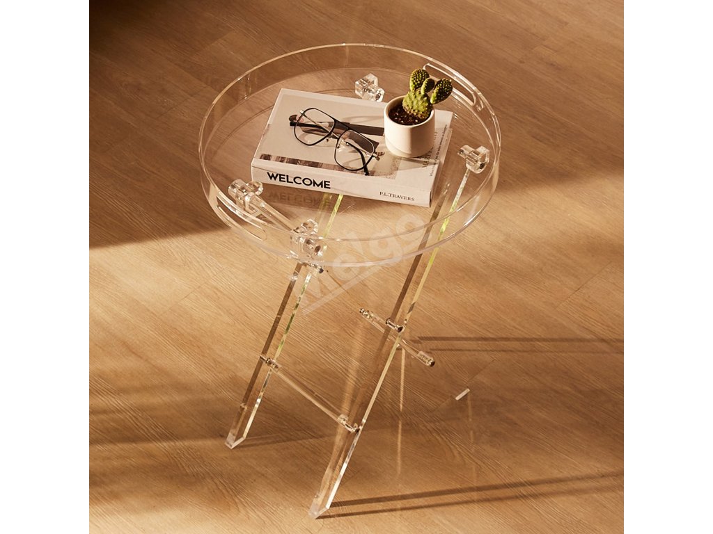Akrylový sklápací odkladací stolík s x nohami, priehľadný do bytu