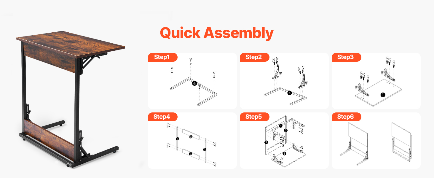 Tento bočný stolík na notebook obsahuje návod krok za krokom a označené diely, ktoré zjednodušujú každý krok. Zabudnite na zložitú montáž - stačí postupovať podľa návodu a zostavu rýchlo dokončiť. Ideálny na doplnenie funkčného stolíka do akejkoľvek miestnosti v priebehu niekoľkých minút.