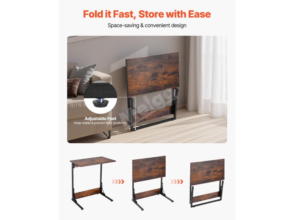 C-tvarový skladací stolík, nastaviteľné nohy, 23.62×14.57×27.56 inch