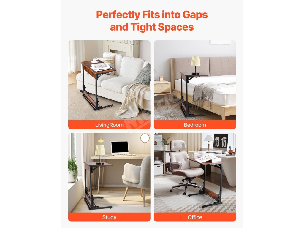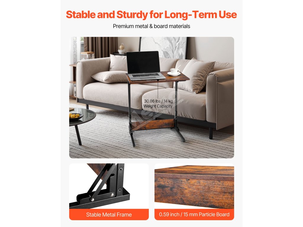VEVOR bočný stolík na notebook na pohovku má jednoduchý vzhľad, ktorý sa hodí k akémukoľvek interiéru. Ideálny ako nočný stolík na nevyhnutné veci, pohovka na diaľkové ovládače a nápoje alebo pracovný stôl na notebooky a súbory. Užívajte si väčšie pohodlie a moderný štýl kdekoľvek ho umiestnite.