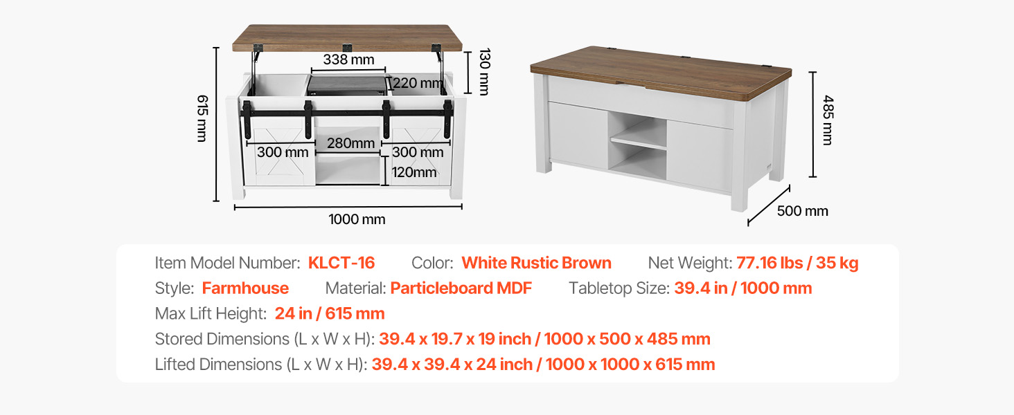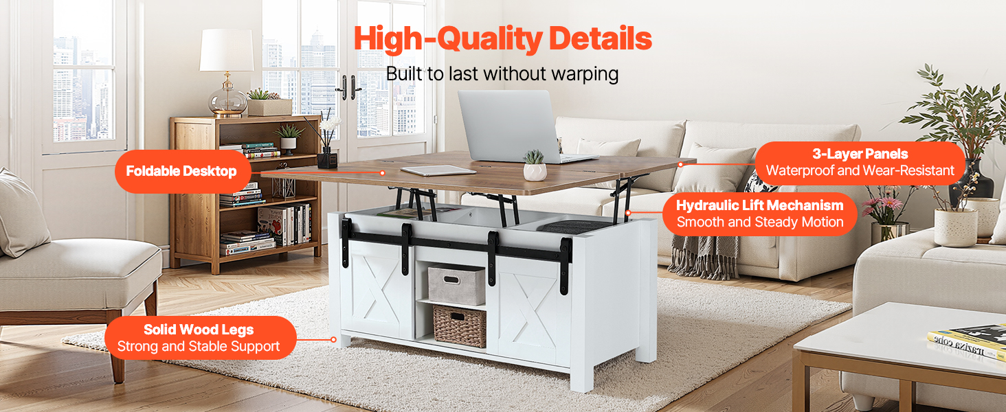 Tento multifunkčný konferenčný stolík so zdvíhacou doskou kombinuje štýl a funkčnosť so skrytým úložným priestorom, takže je ideálnym riešením na každodenné skladovanie. Vďaka hladkému zdvíhaciemu mechanizmu sa ľahko premení na dočasný pracovný alebo jedálenský stôl a bez námahy sa prispôsobí vašim potrebám - či už relaxujete, pracujete z domu, alebo si vychutnávate bežné jedlo v obývačke.